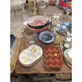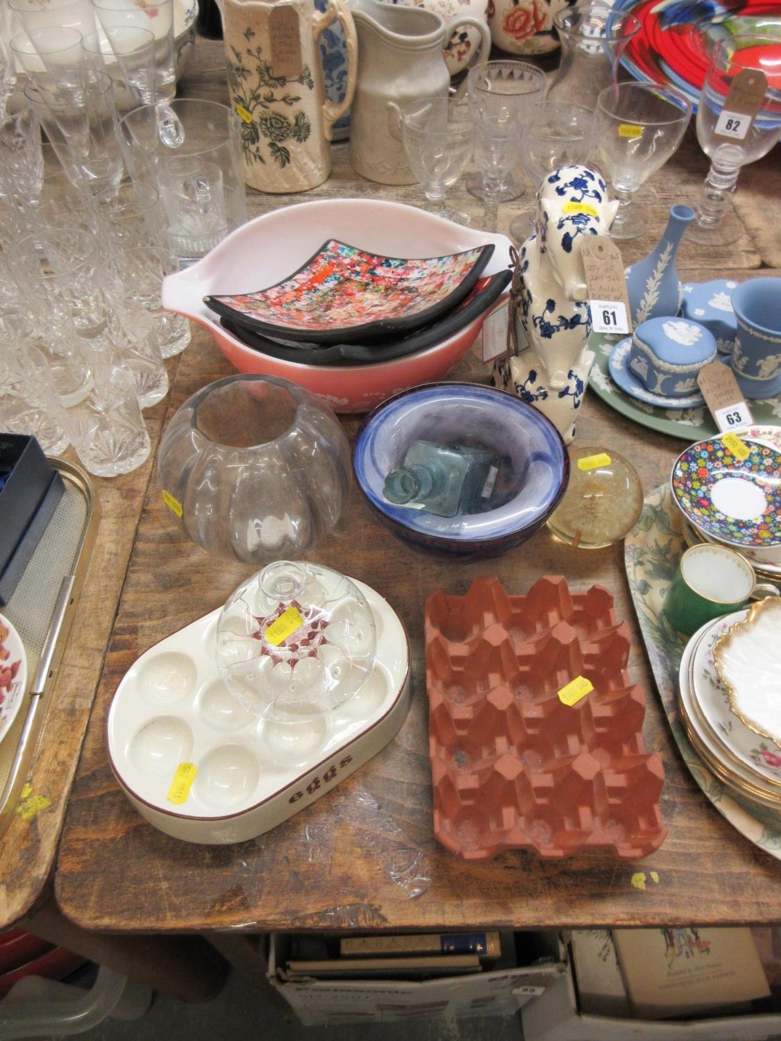 QUANTITY OF GLASS INCLUDING TWO MOSAIC PLATES AND EGG STAND