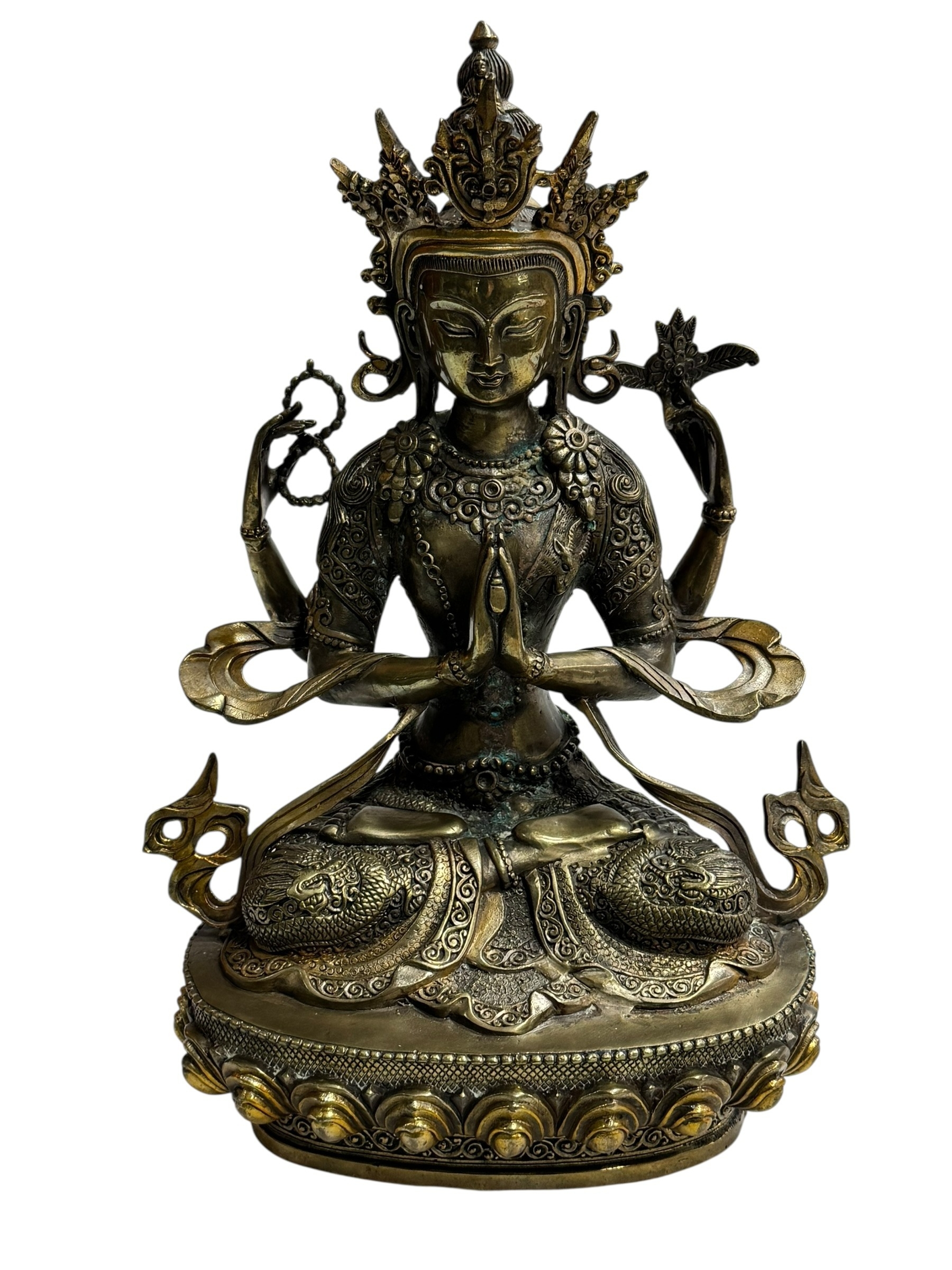 Brass exotic Tibetan Bodhisattva Padmapani Buddha statue, 30cm.