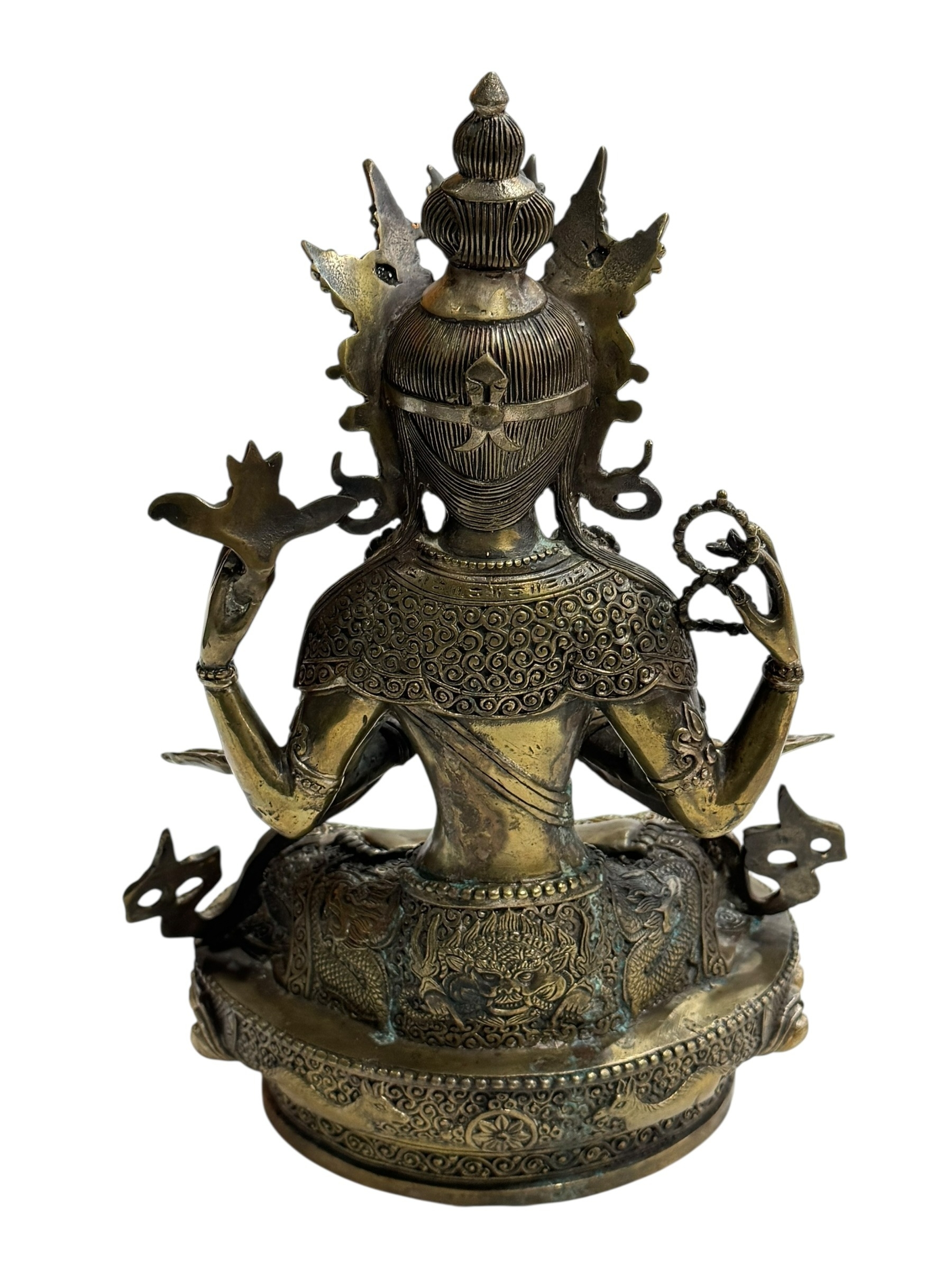 Brass exotic Tibetan Bodhisattva Padmapani Buddha statue, 30...
