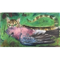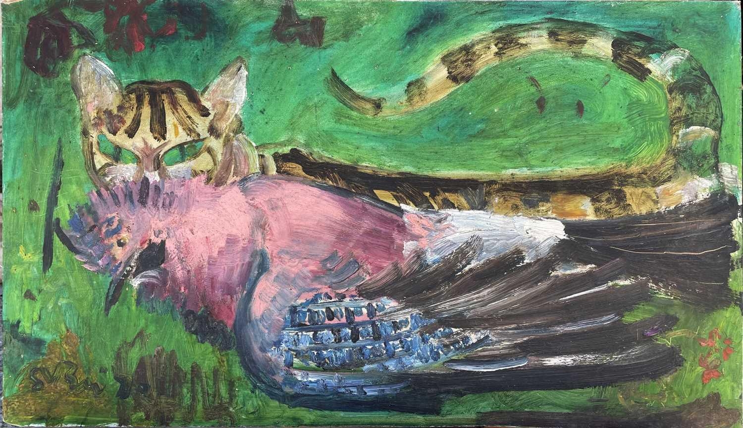 Sven BERLIN (1911-1999) Cat and Jay Oil on board Signed and dated '72 35.5x61cm