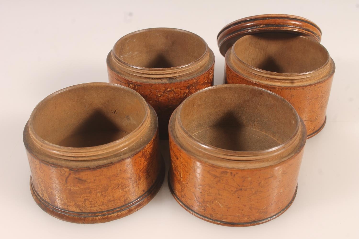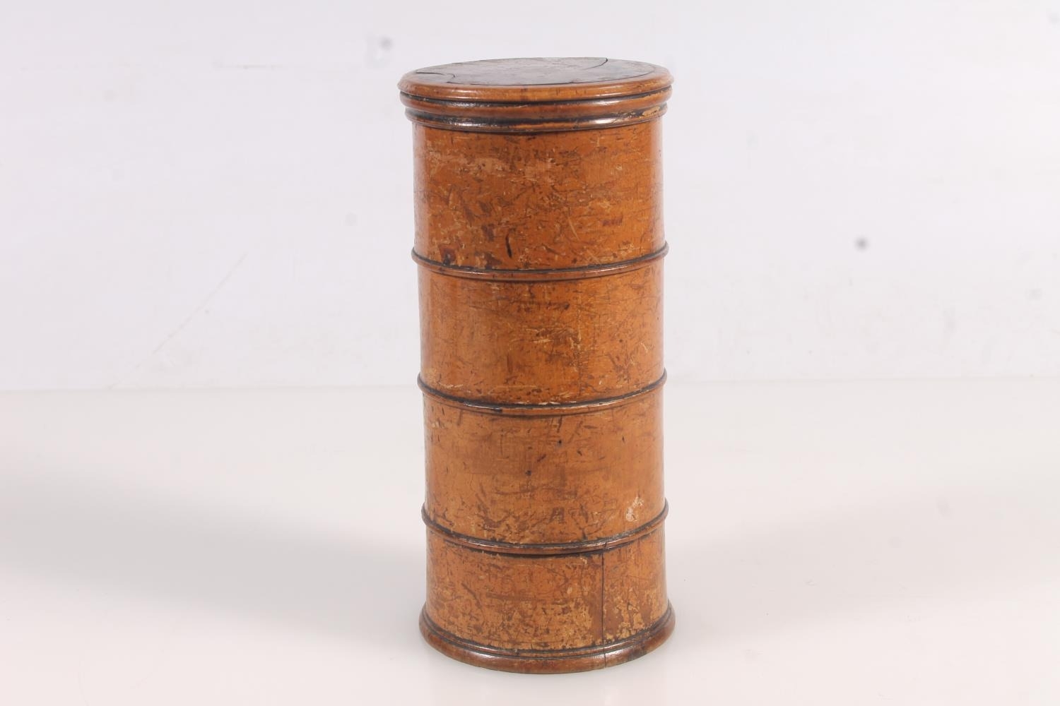 Victorian four section treen spice tower, H17cm.