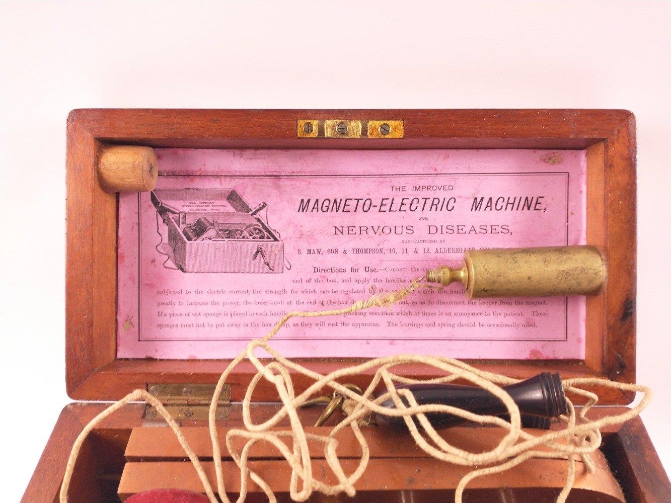 RARE! The Improved Magneto-Electric machine for Nervous diseases by S.Maw son & Thomson, in wooden case. Have a shocking time with it!