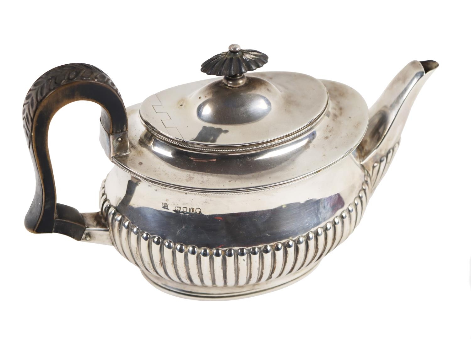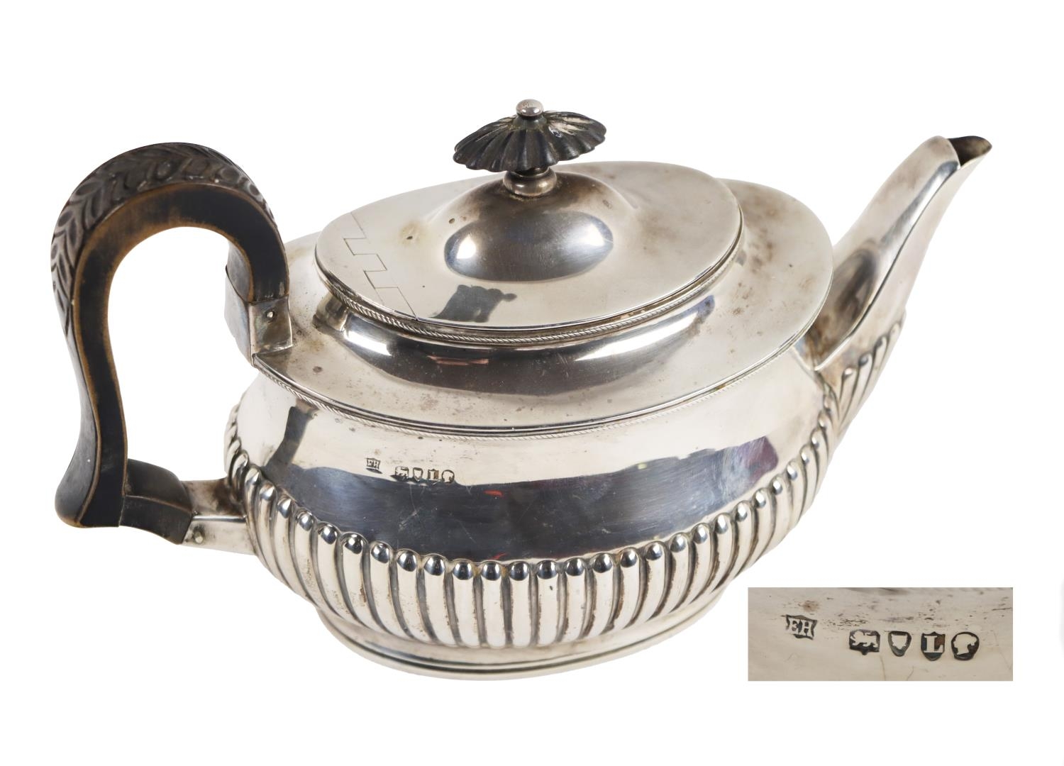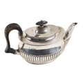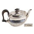 An attractive Victorian small Teapot, with wooden finial and handle, reeded body, by Edward Hutton, London 1886, approx. 12 ounces. (1)