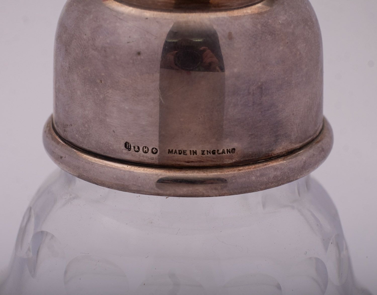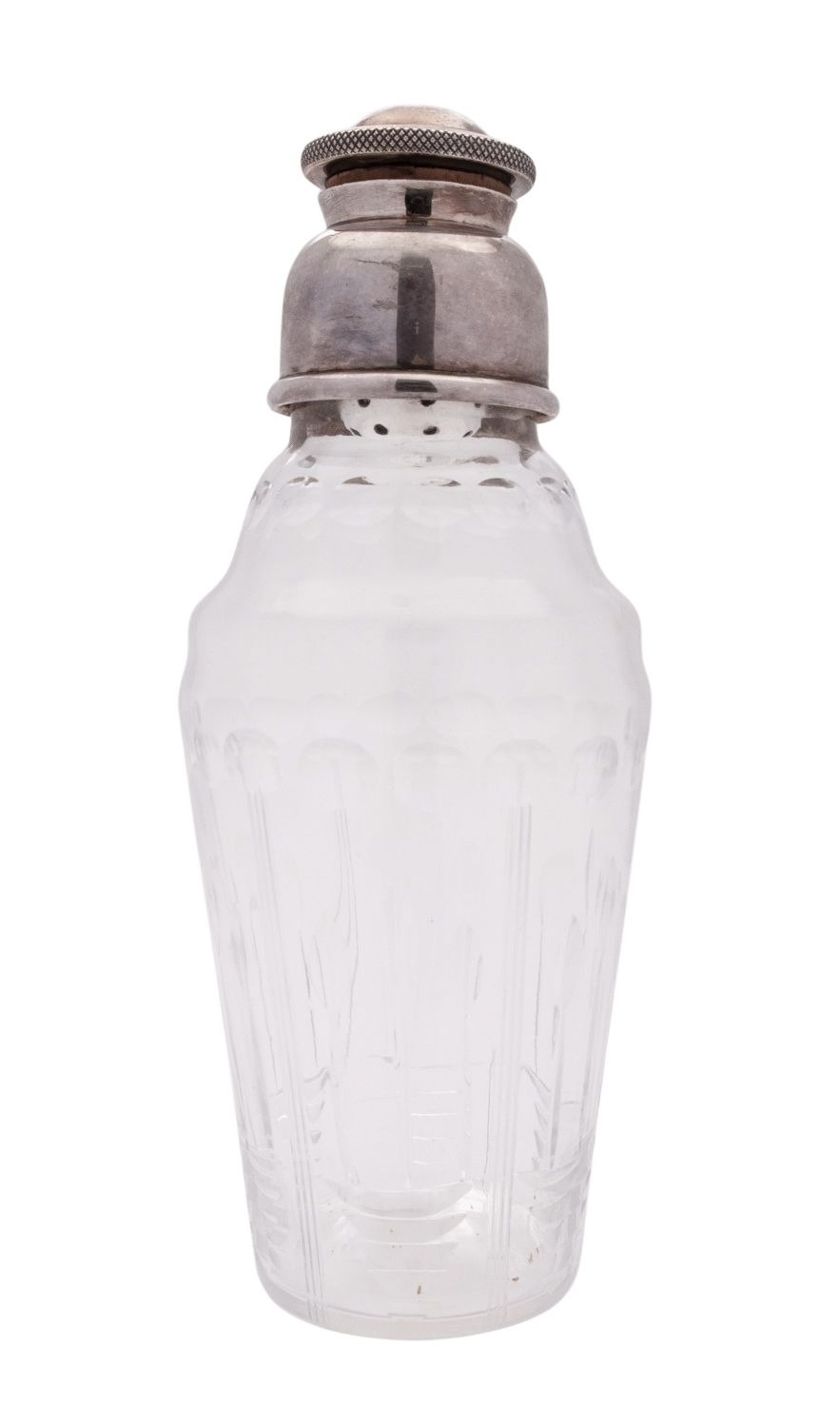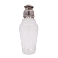 A 20th century silver plate mounted clear glass cocktail shaker, by Hukin & Heath, tapering circular form, with a cut-glass body and a corked cover c.1940; 9.1'' (23.2cm) high
