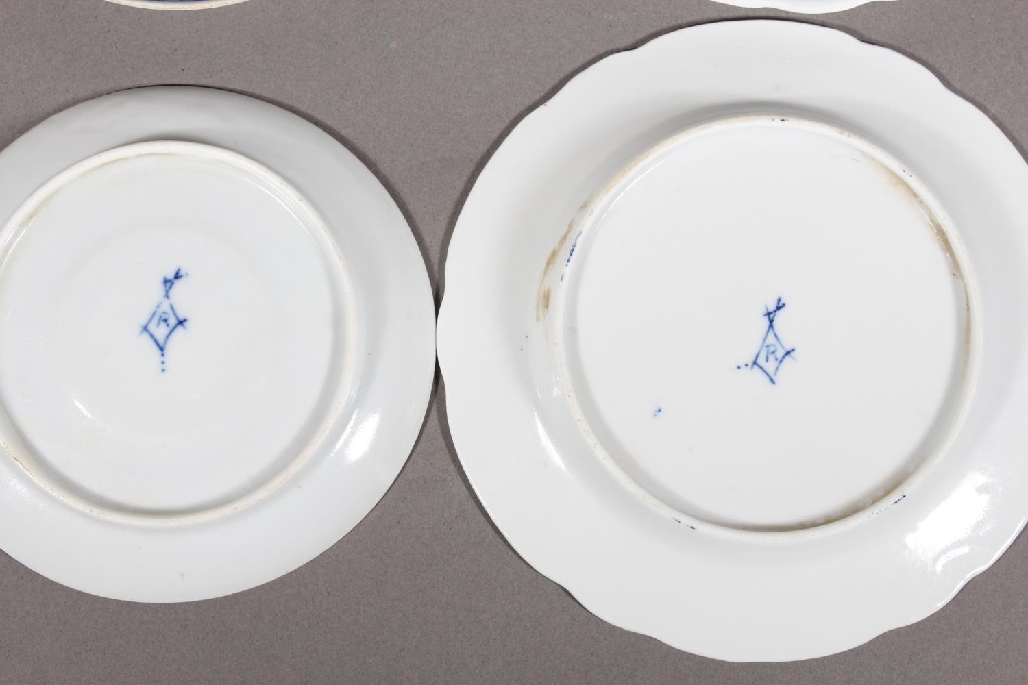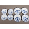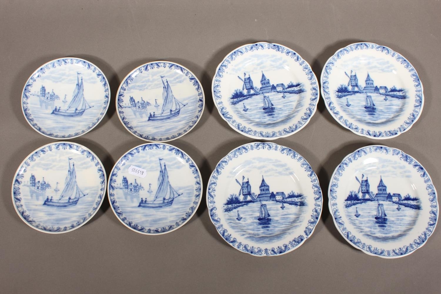 Dutch blue onion dishes decorated with windmills and others decorated with ships.