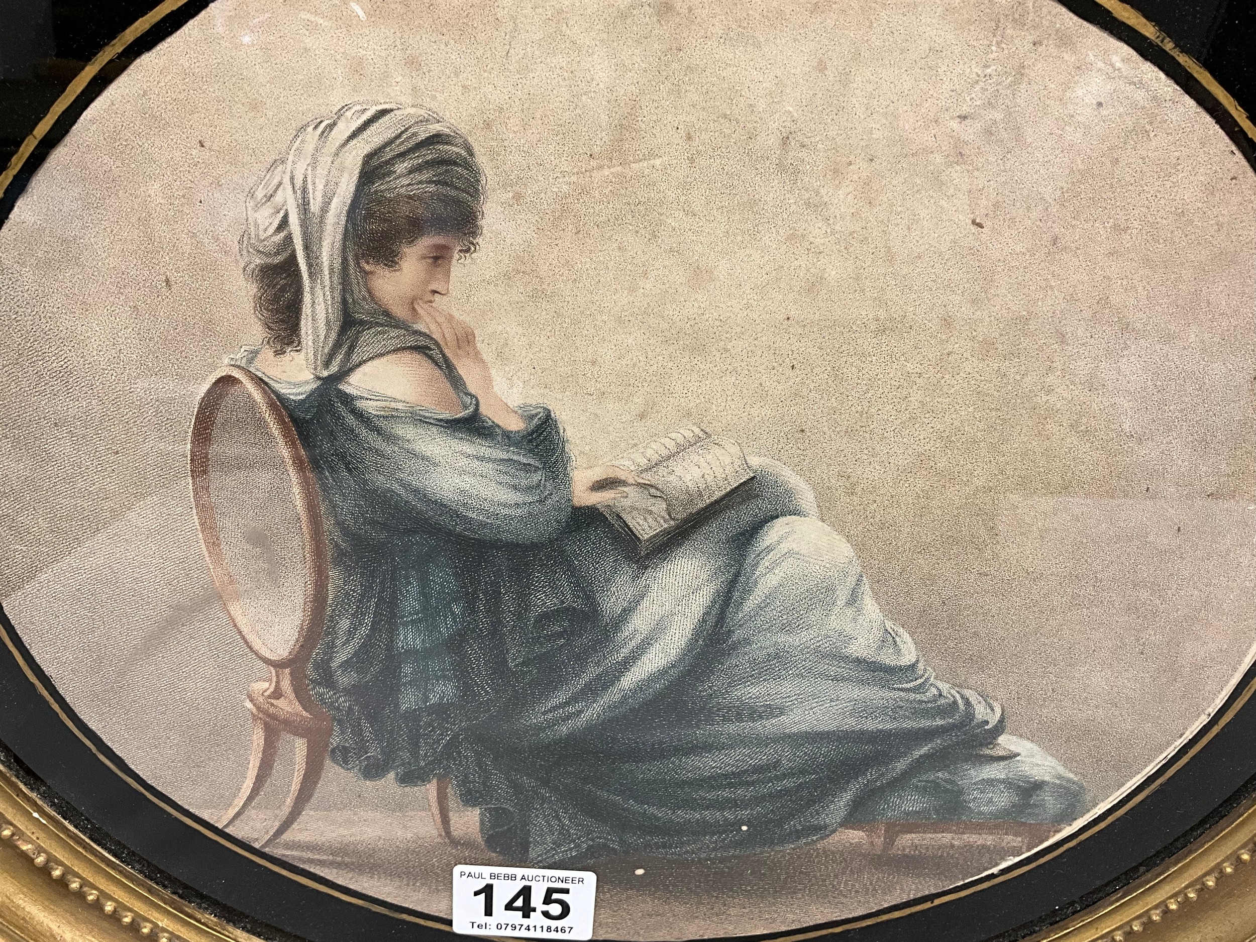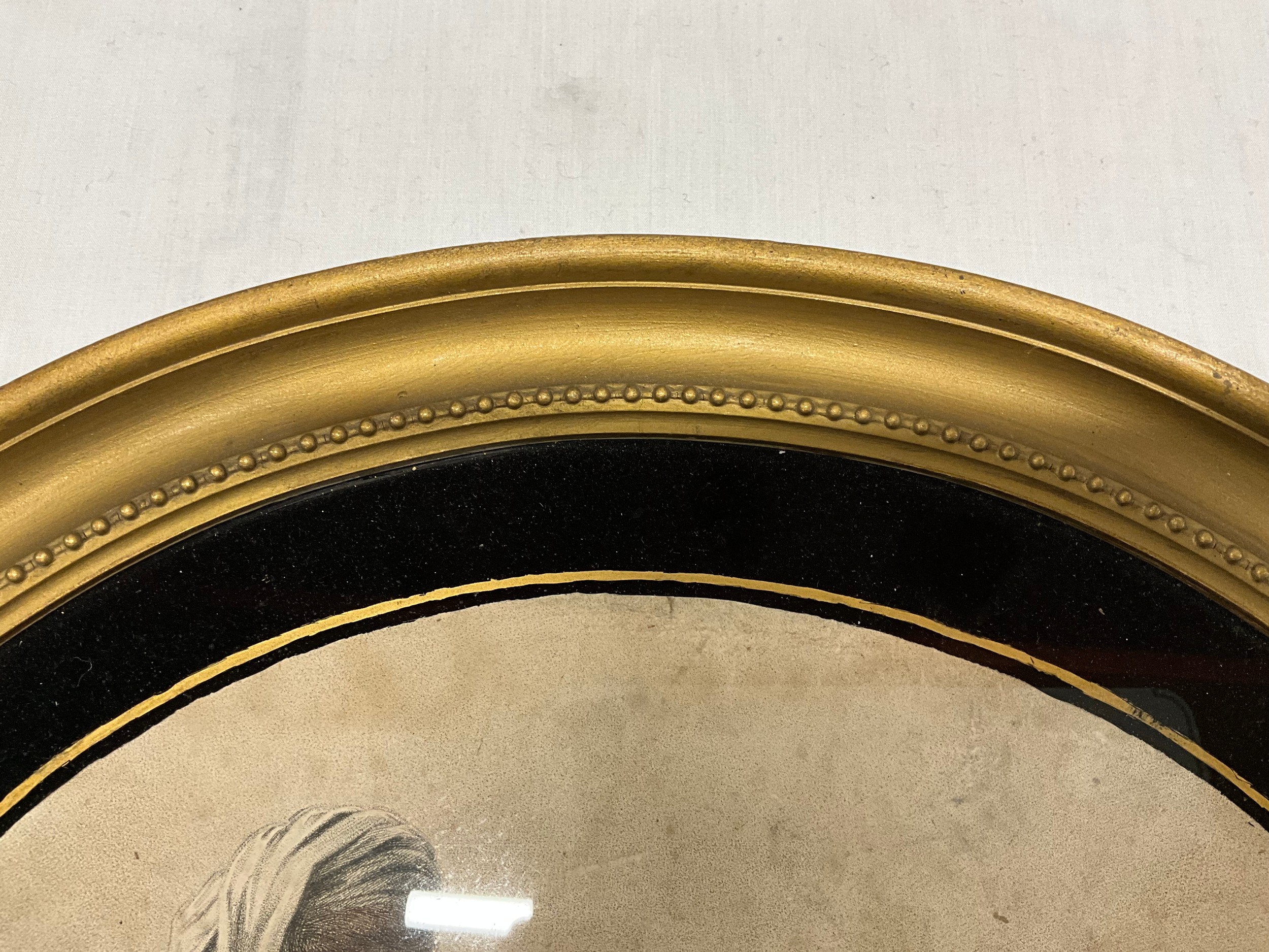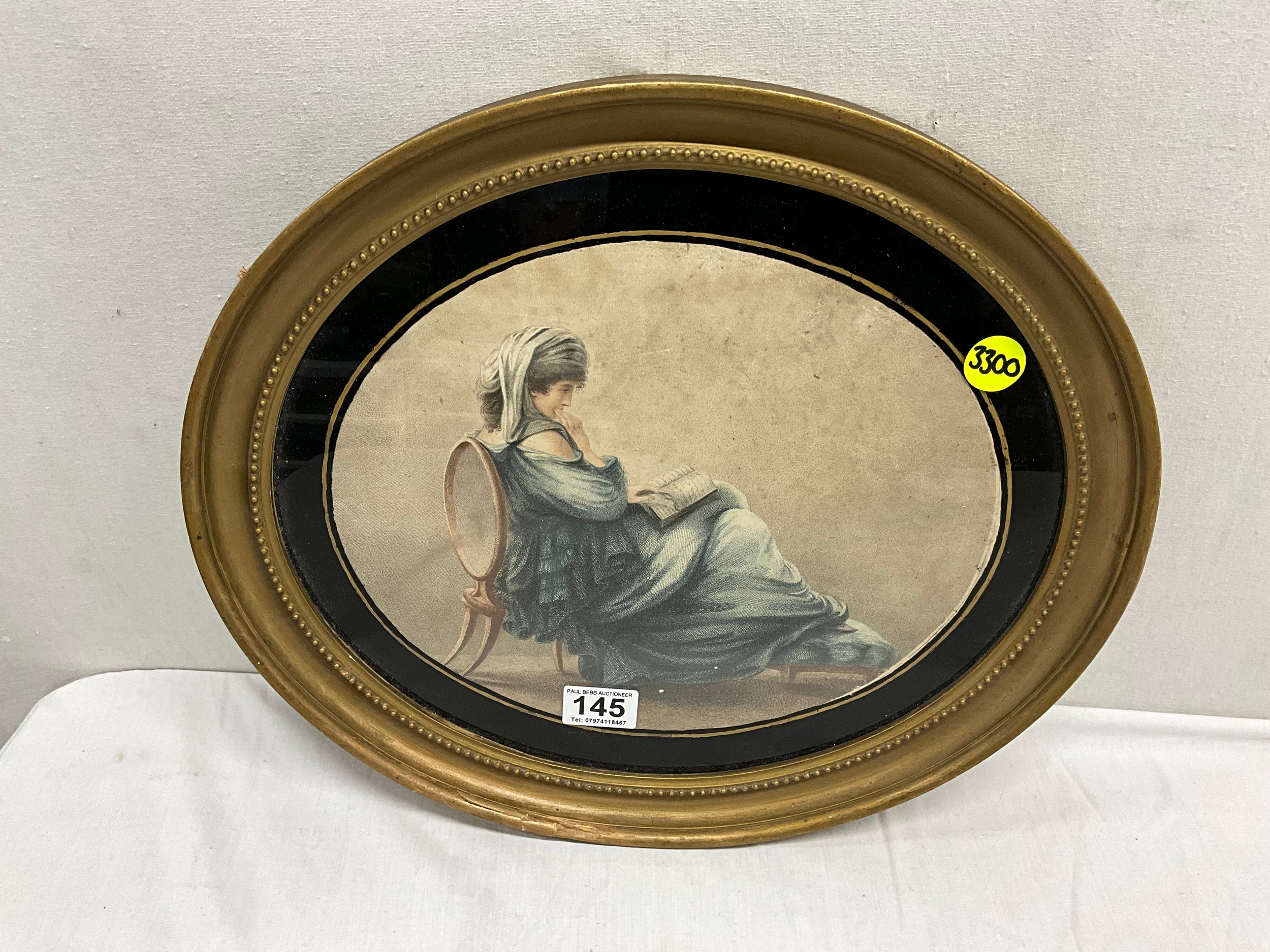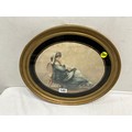 VINTAGE OVAL GILT FRAMED PRINT OF SEATED LADY 16"X15"