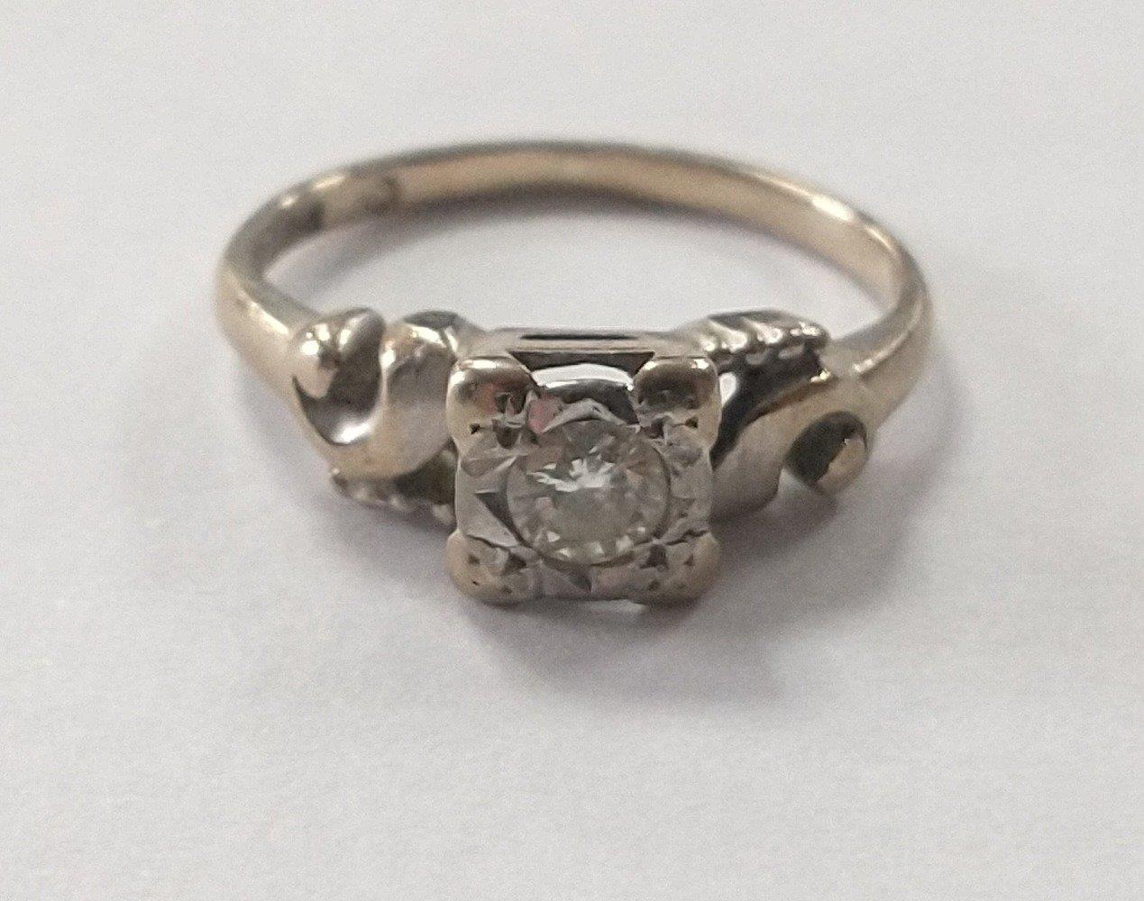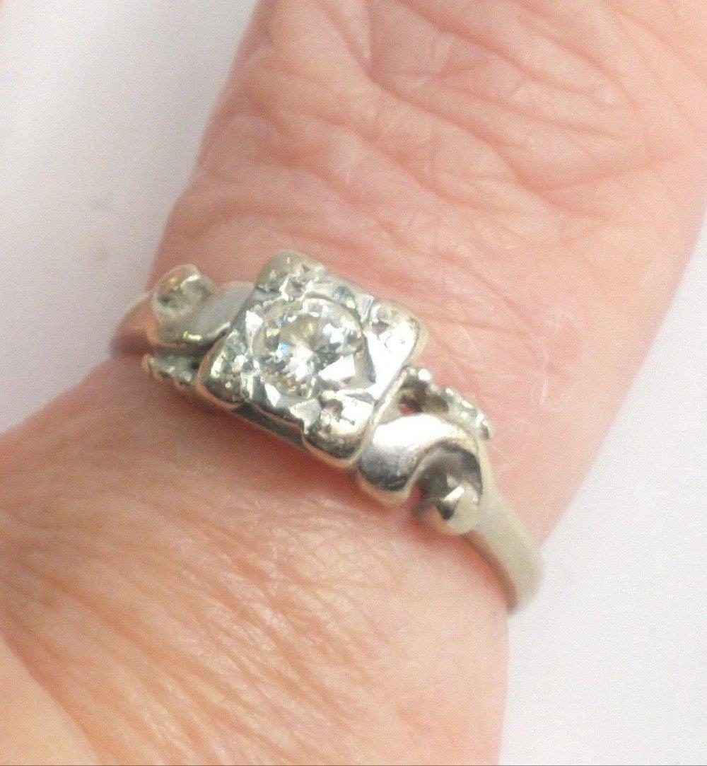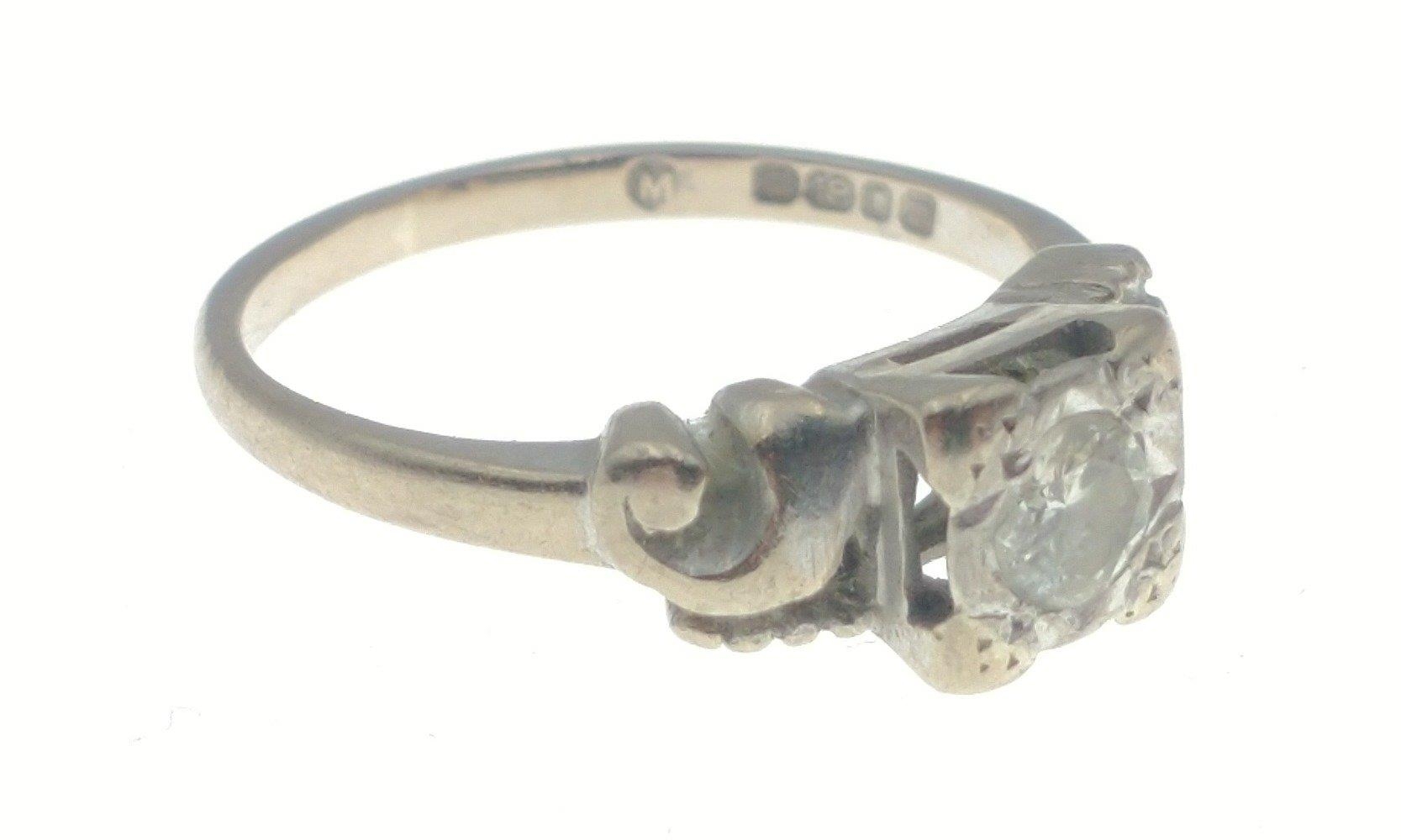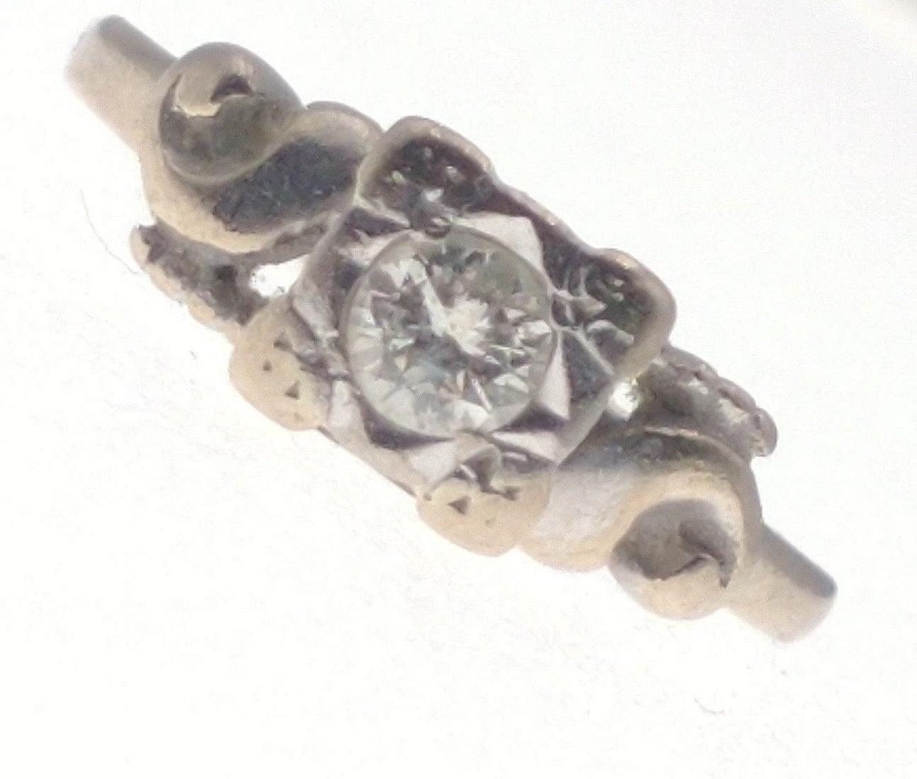 A gorgeous small 18ct white gold diamond solitaire ring. Size H, gross weight 2.7g. Diamond is 3mm across and appears clean and bright