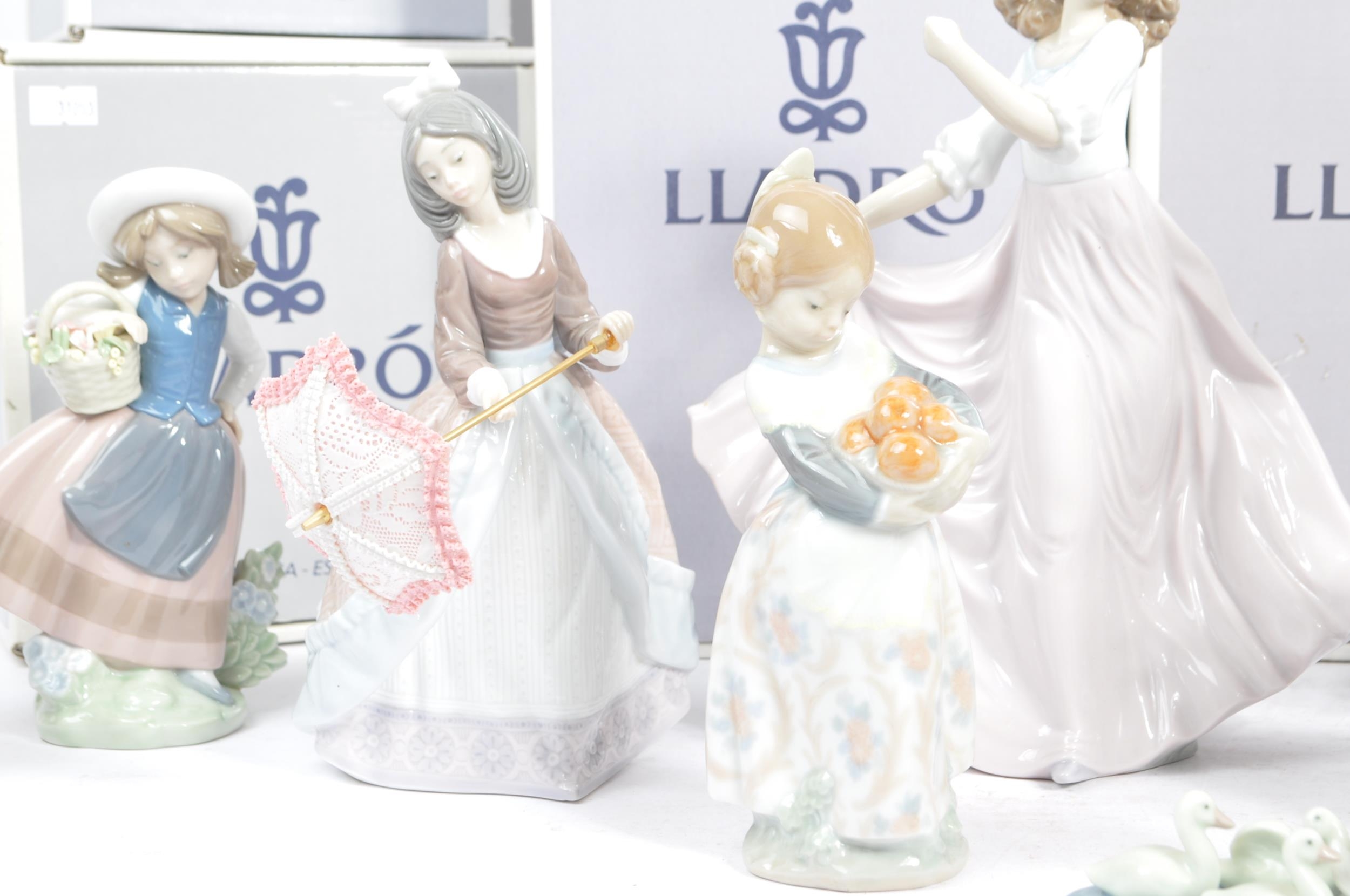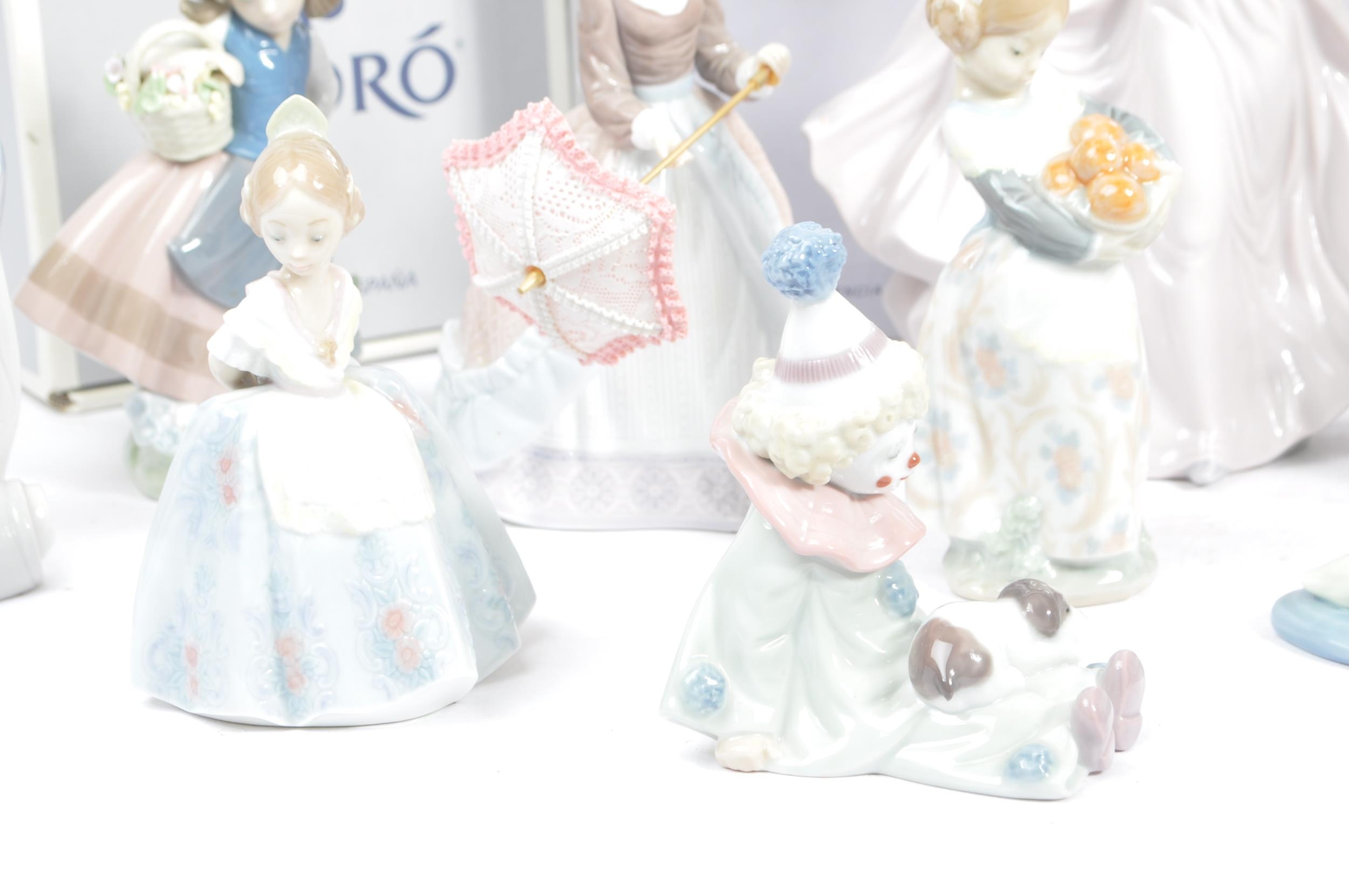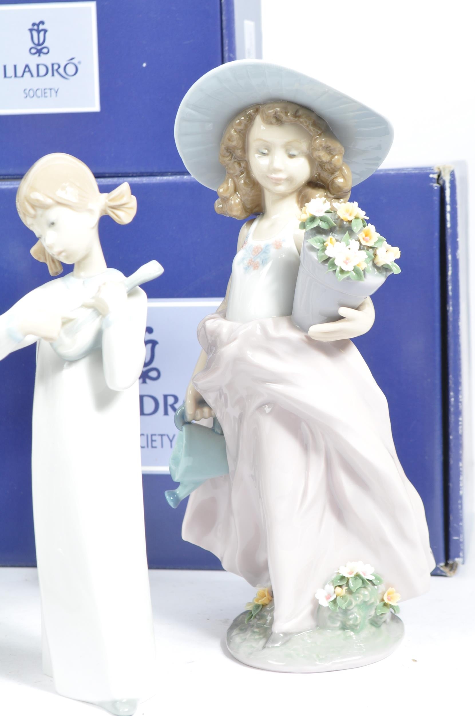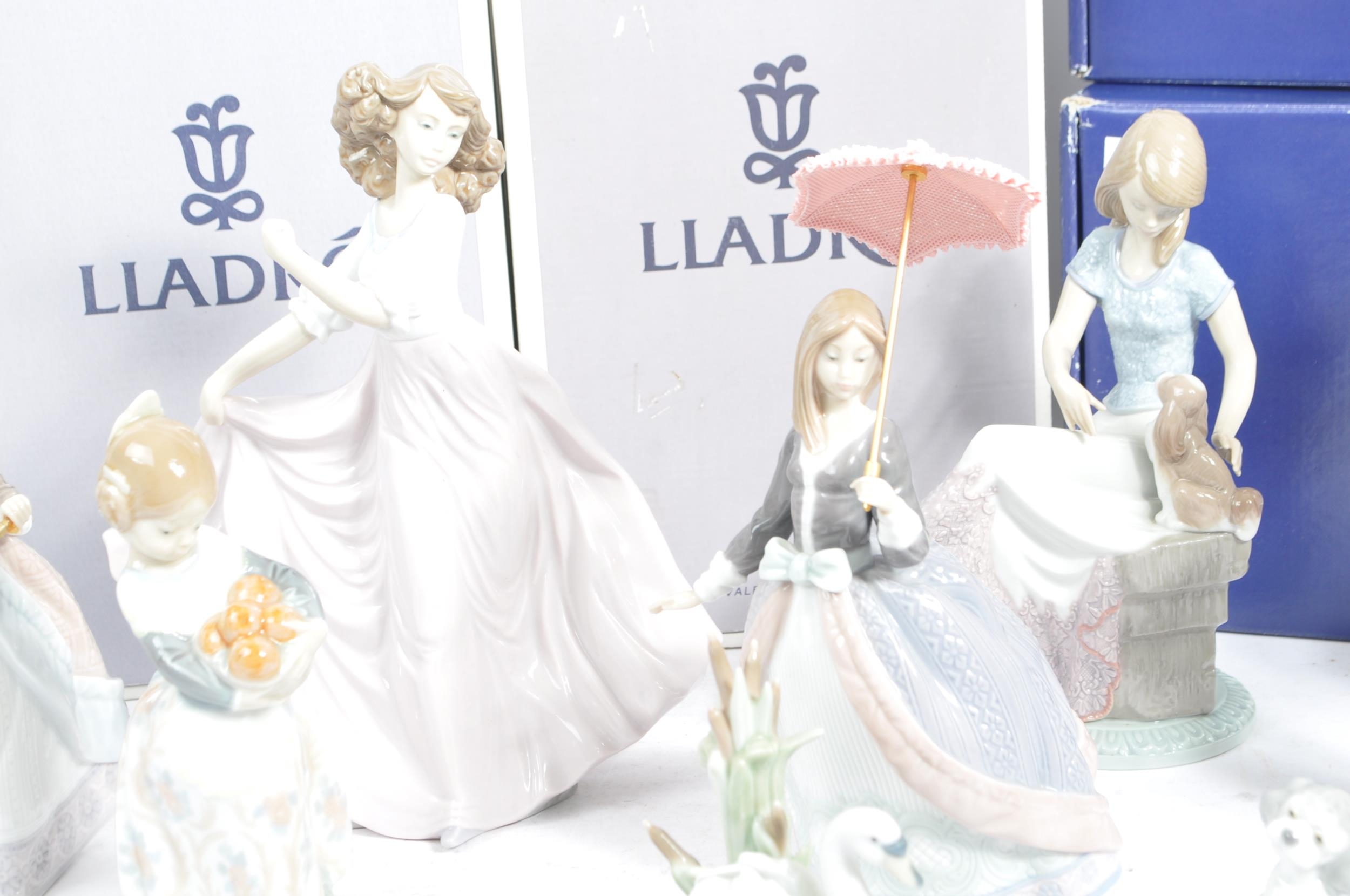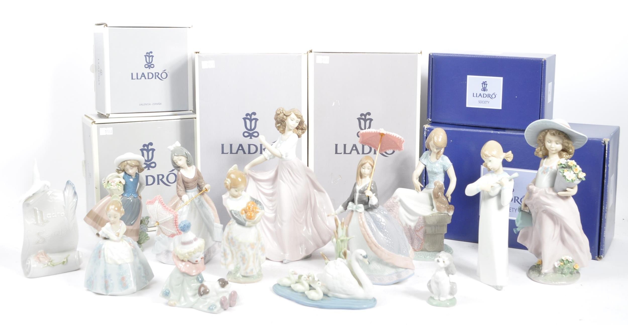 A collection of 15 Lladro figures made up of some classic designs. To include " A friend for life" designed by Juan Huerta, " Girl with guitar" designed by Fulgencio Garcia and a collectors society "Picture Perfect".
