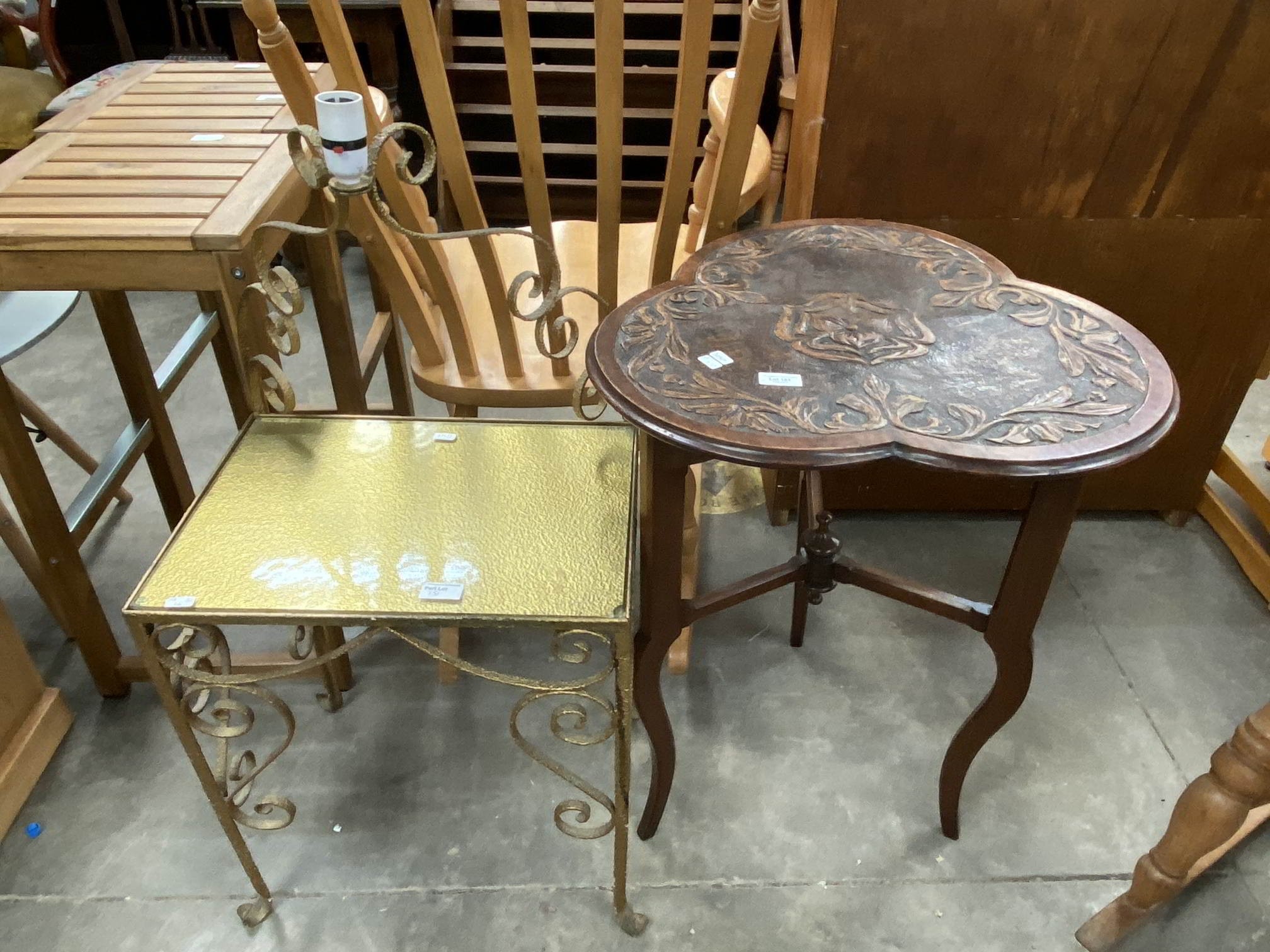 Victorian carved mahogany occasional table 69H 53W & a gilt hall table with light fitting (requires re wiring) 96H 33W 46D