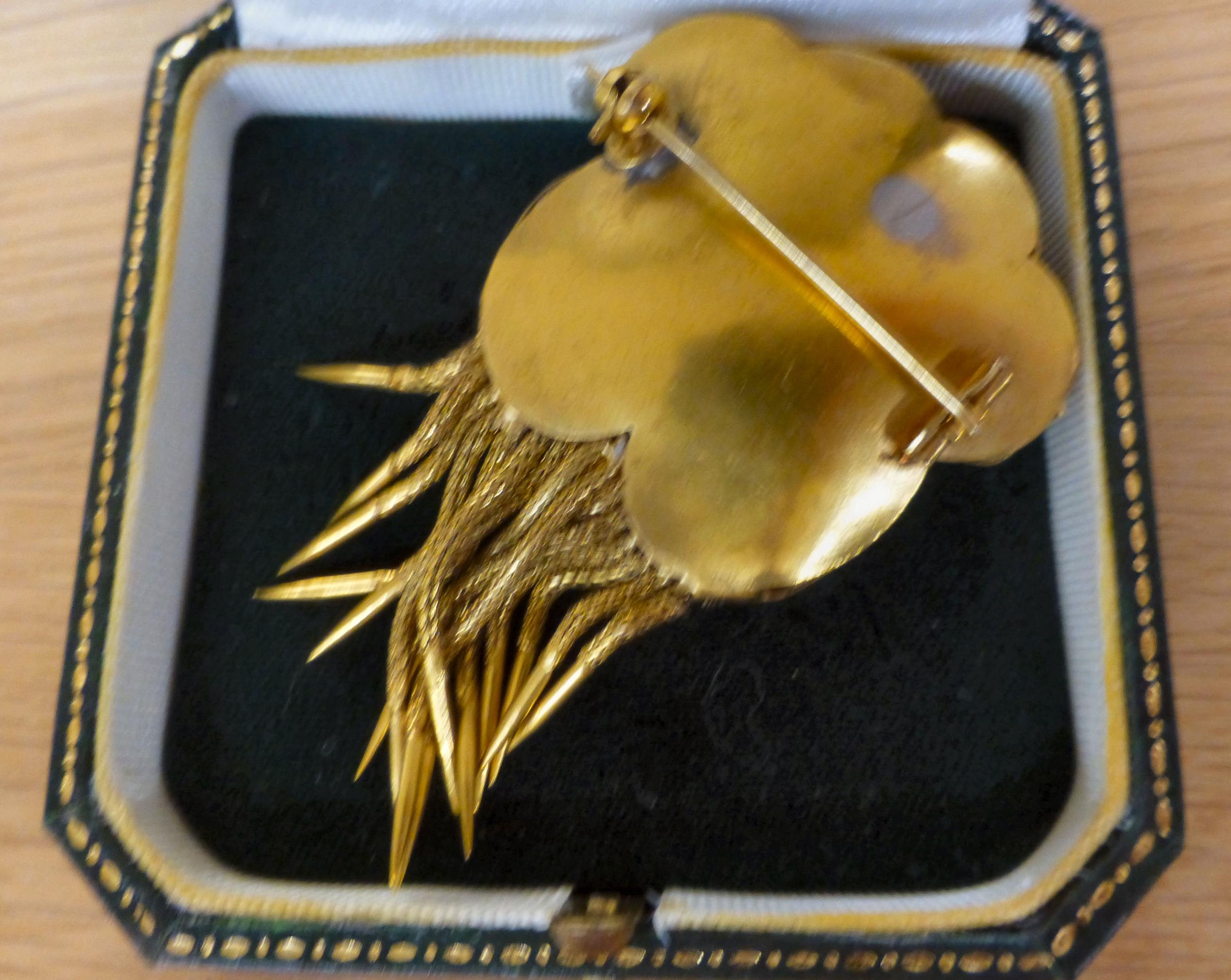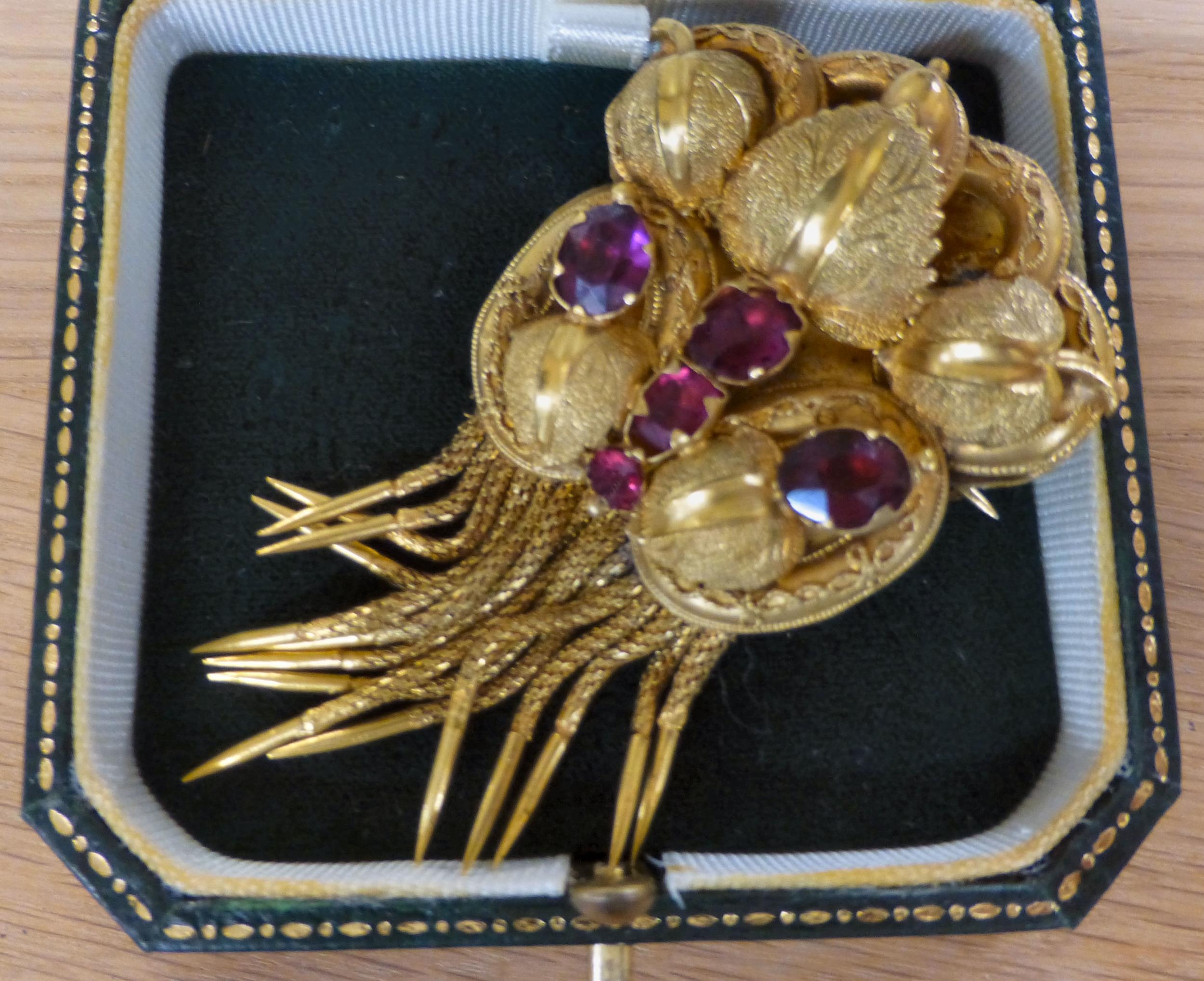 A yellow metal and coloured stone set brooch boxed (approx. gross weight 19.5 grams)