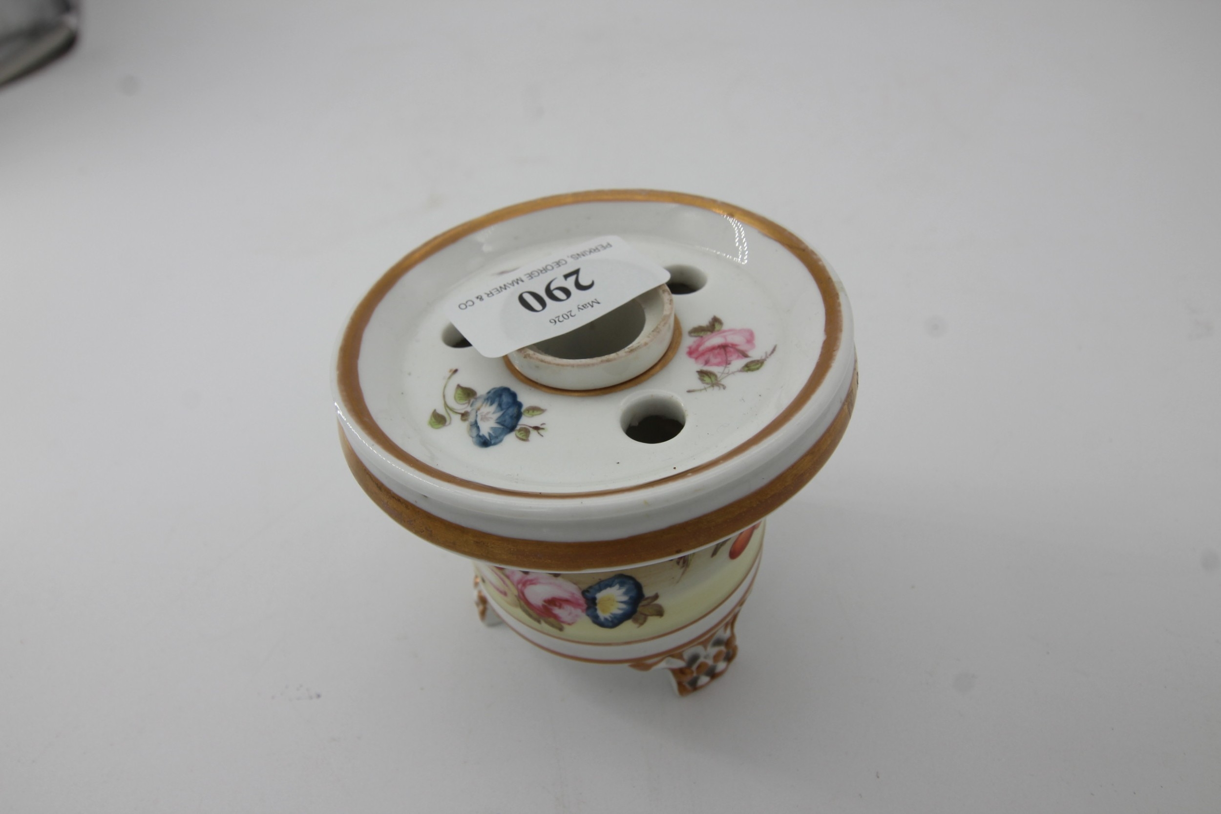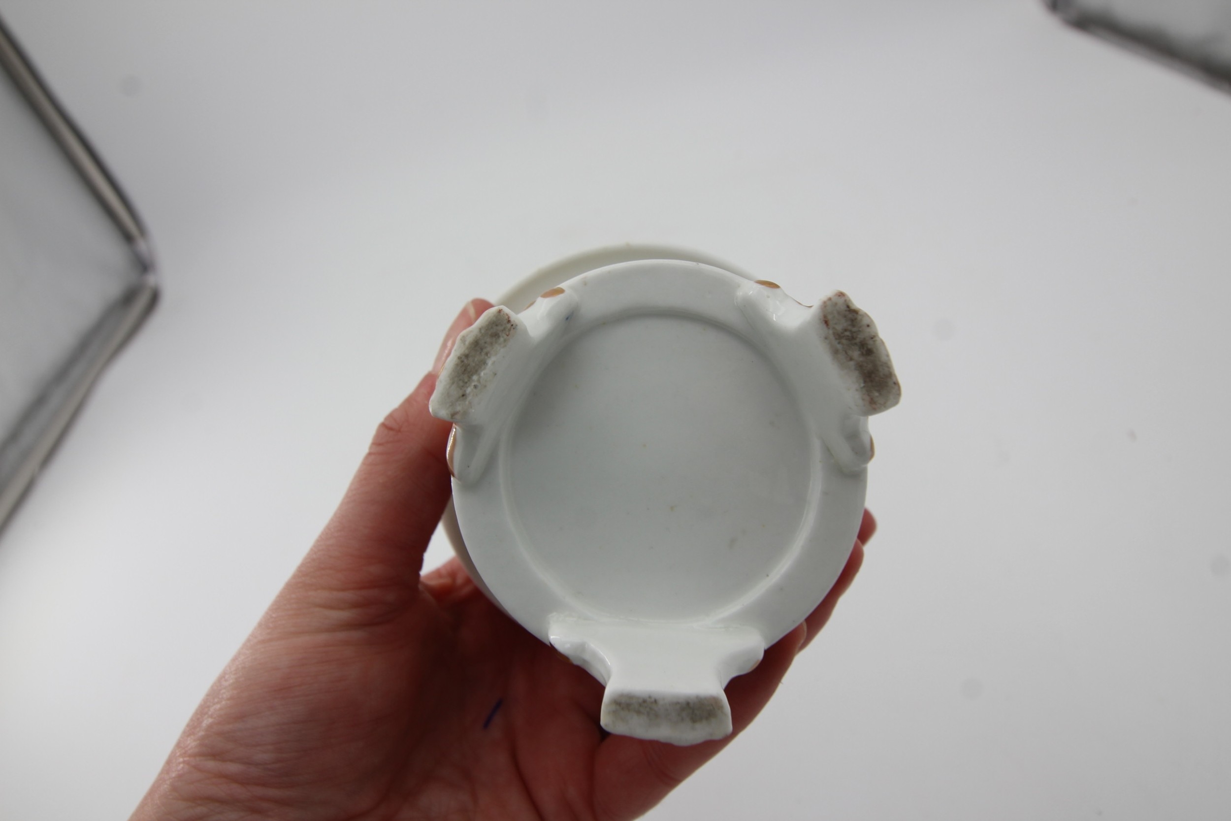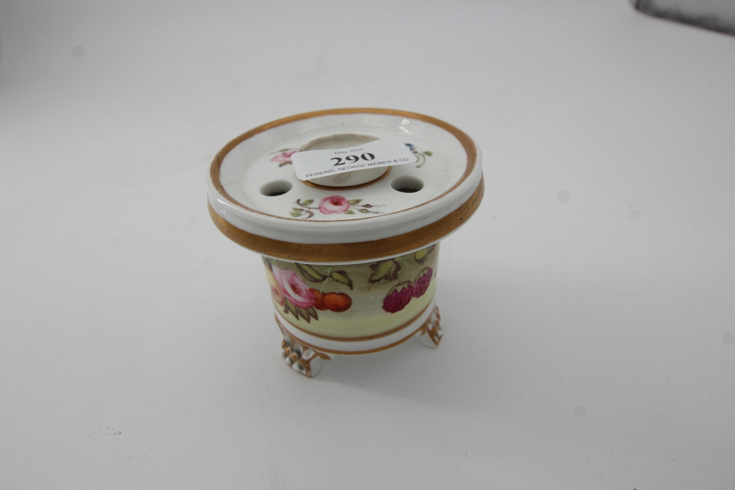 Hand painted Derby ink well decorated to sides and top with separate ink inset