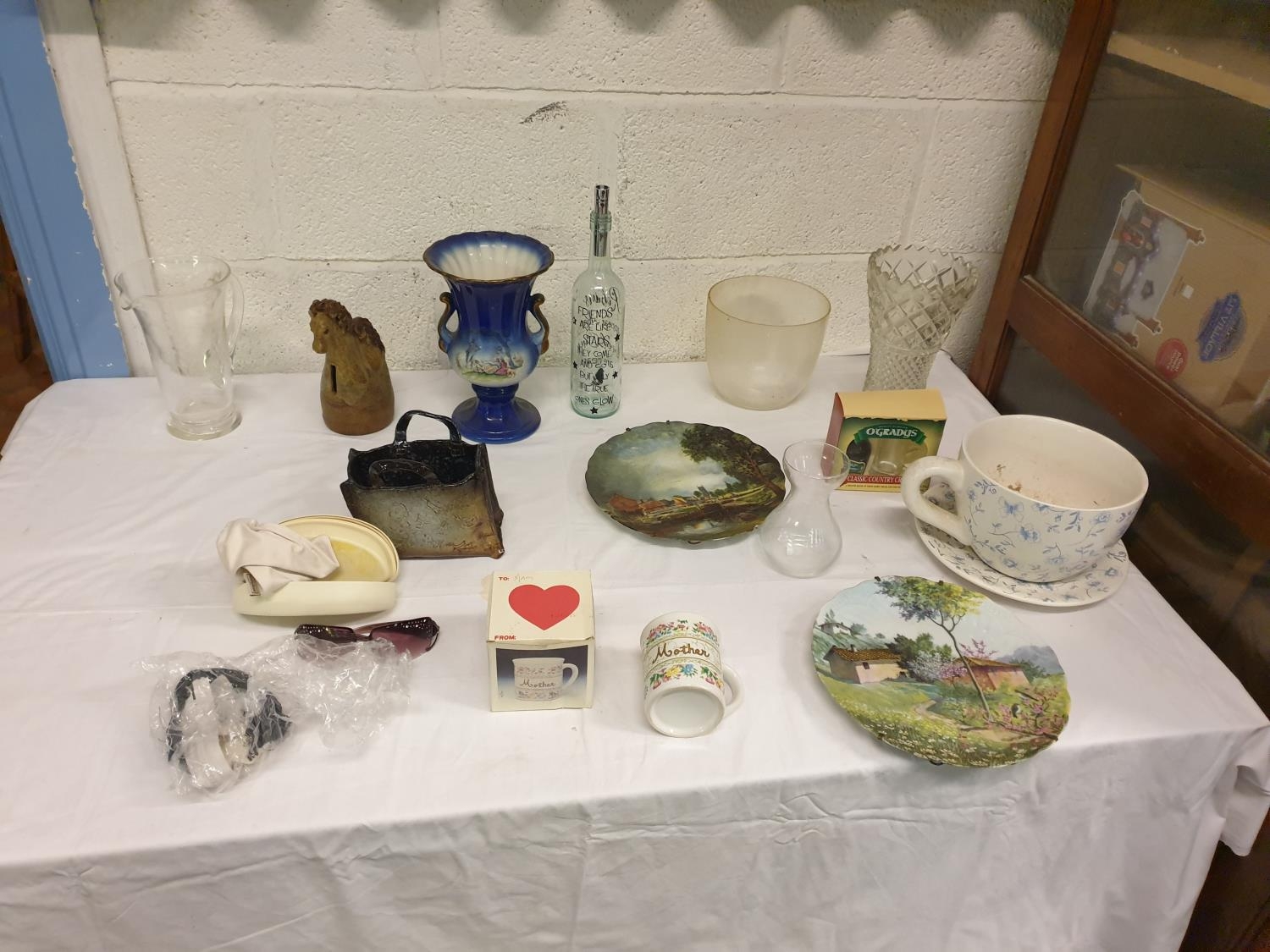 Box to Include Tea Cup Jardinière & Saucer, Plates, Vases, J...