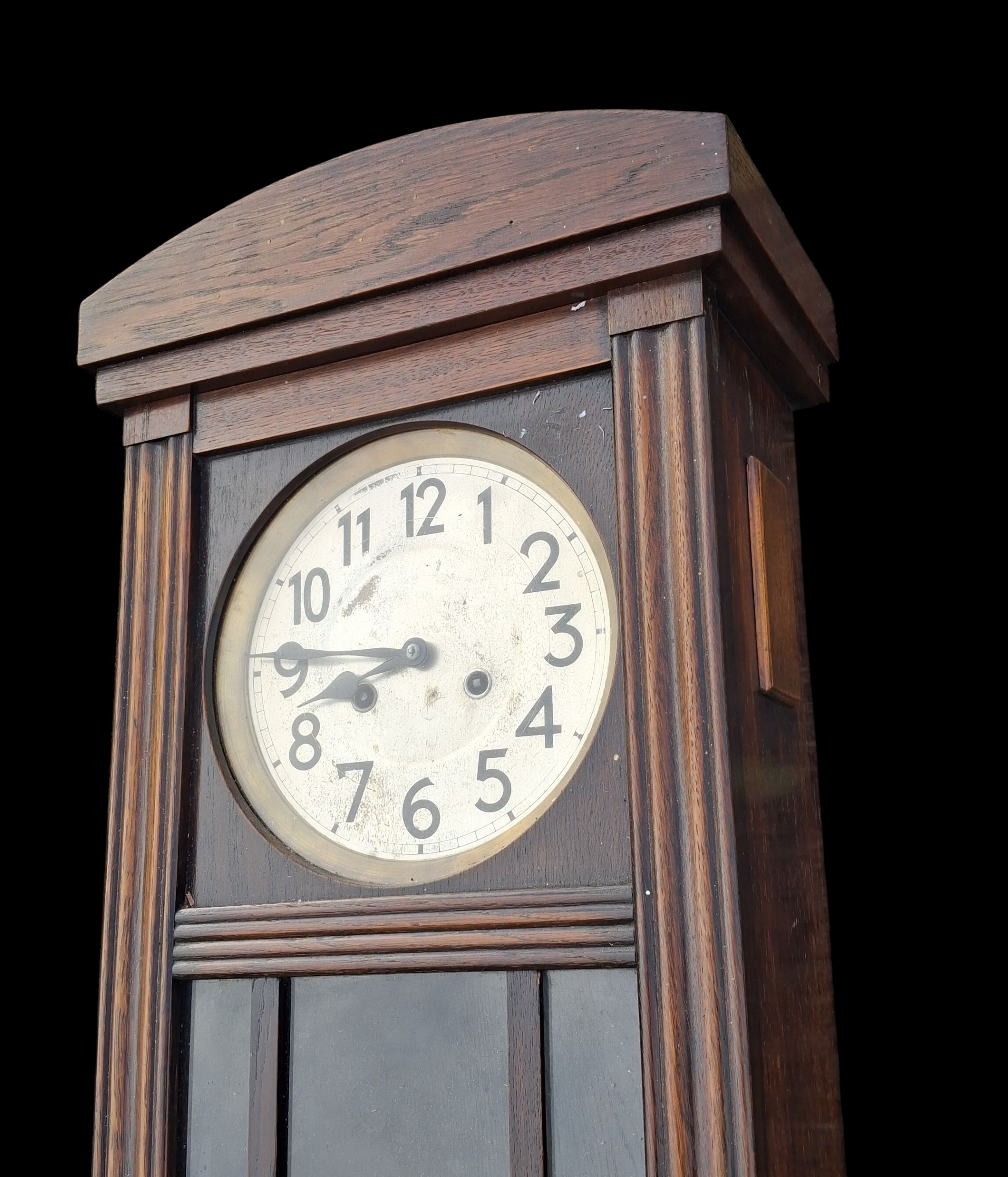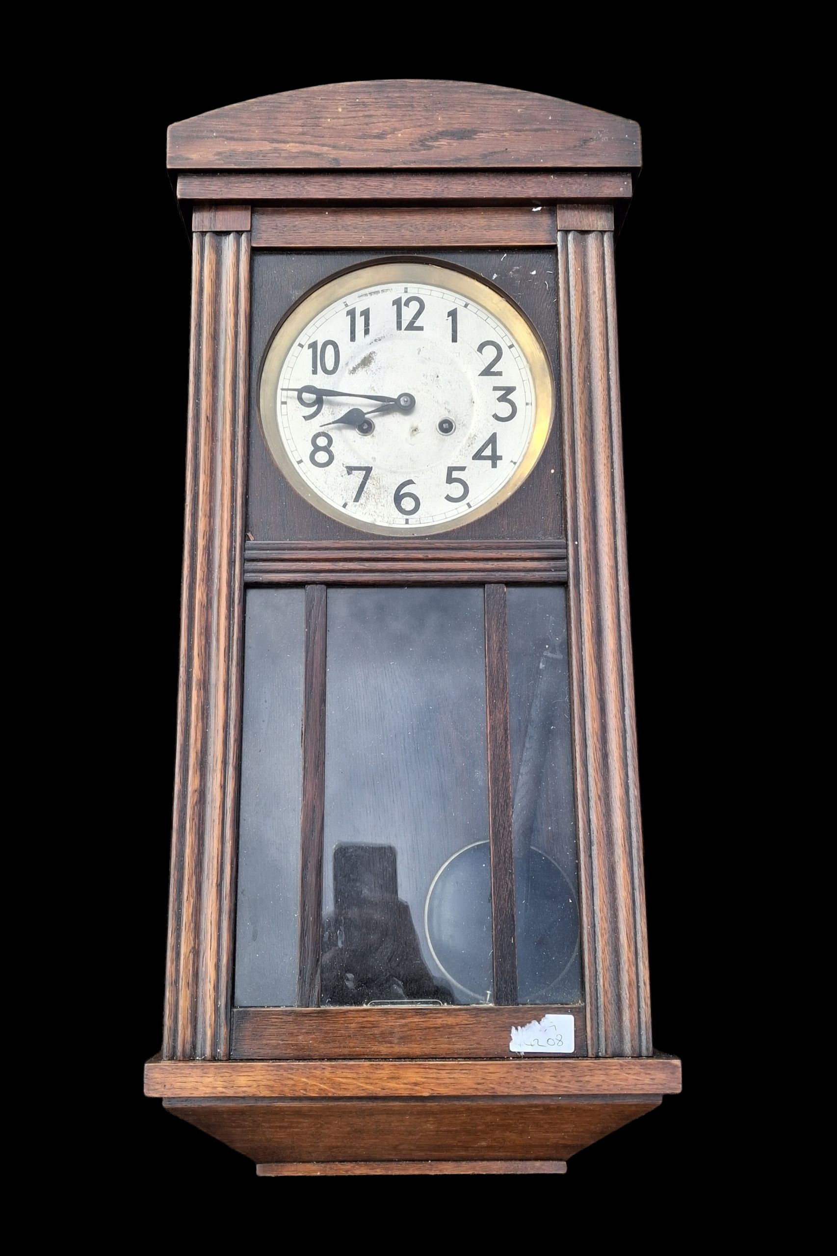 A VINTAGE STYLE OAK CASE WALL CLOCK