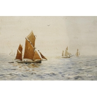 David Law RBA RPE (1831-1902): watercolour, punt on a river, 33 x 20 cm. Not available for in-house P&P