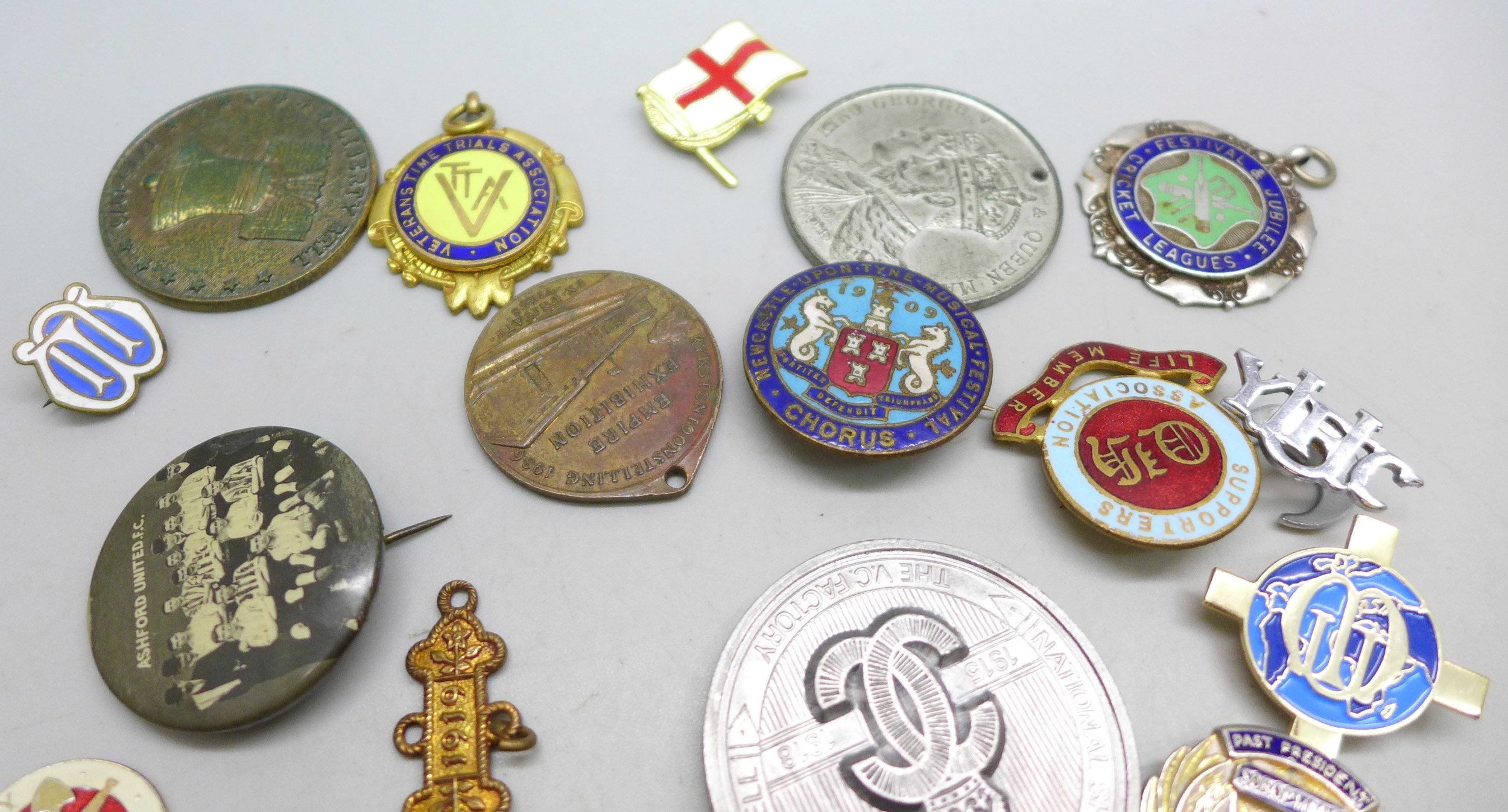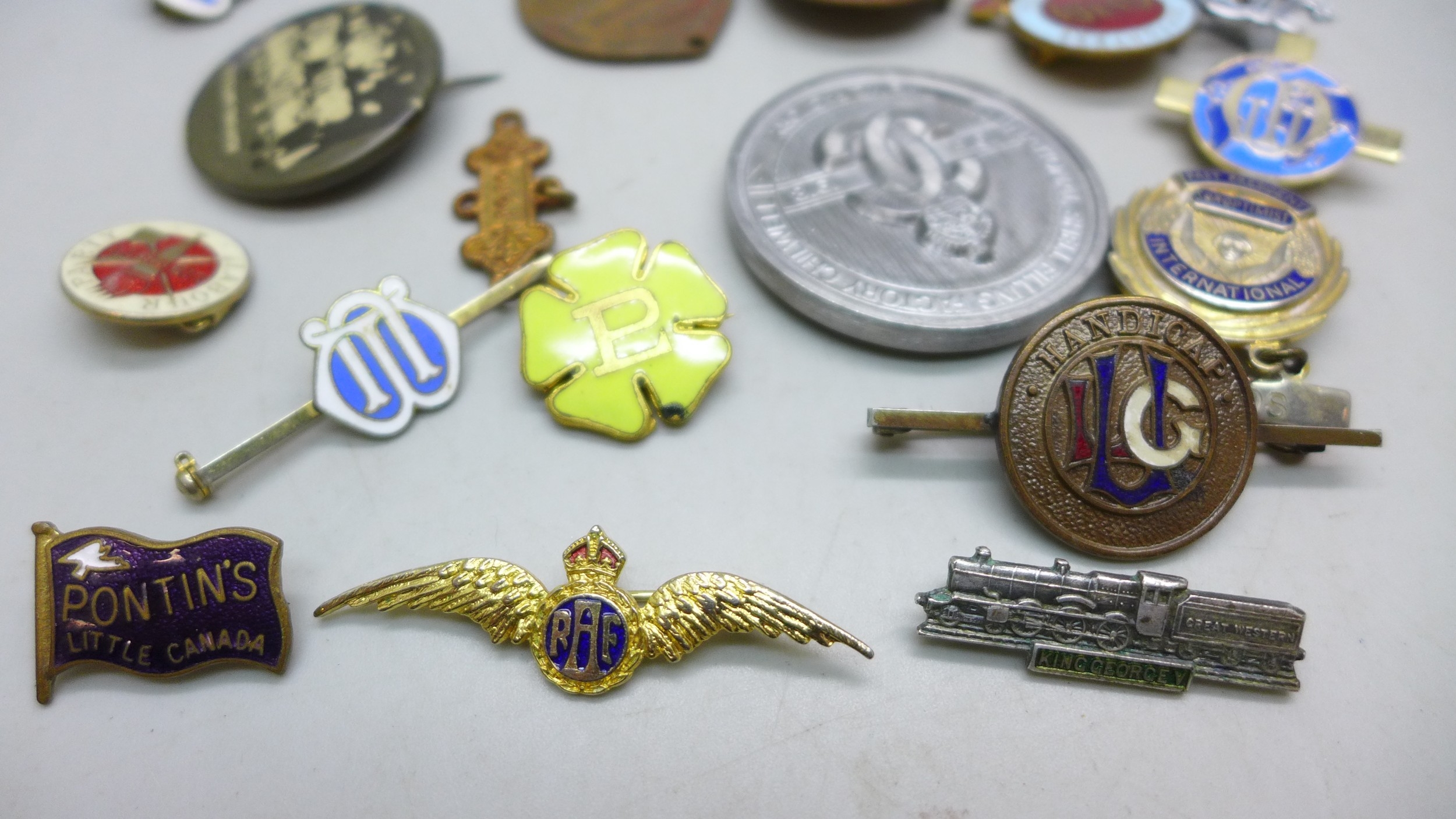 A collection of badges, commemoratives, etc., RAF, Pontins, King George V, railway