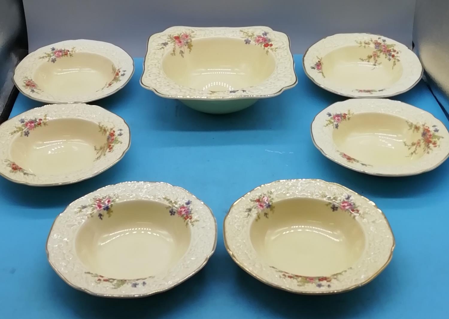 Crown Devon Dessert Set (Trifle Bowl and 6 Dishes) in the 'Florentine' Pattern. Seconds Quality.