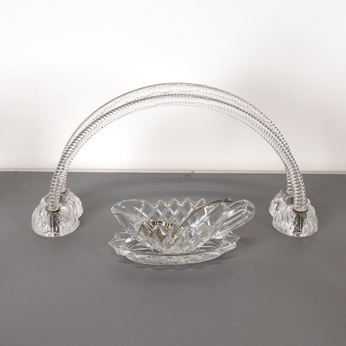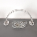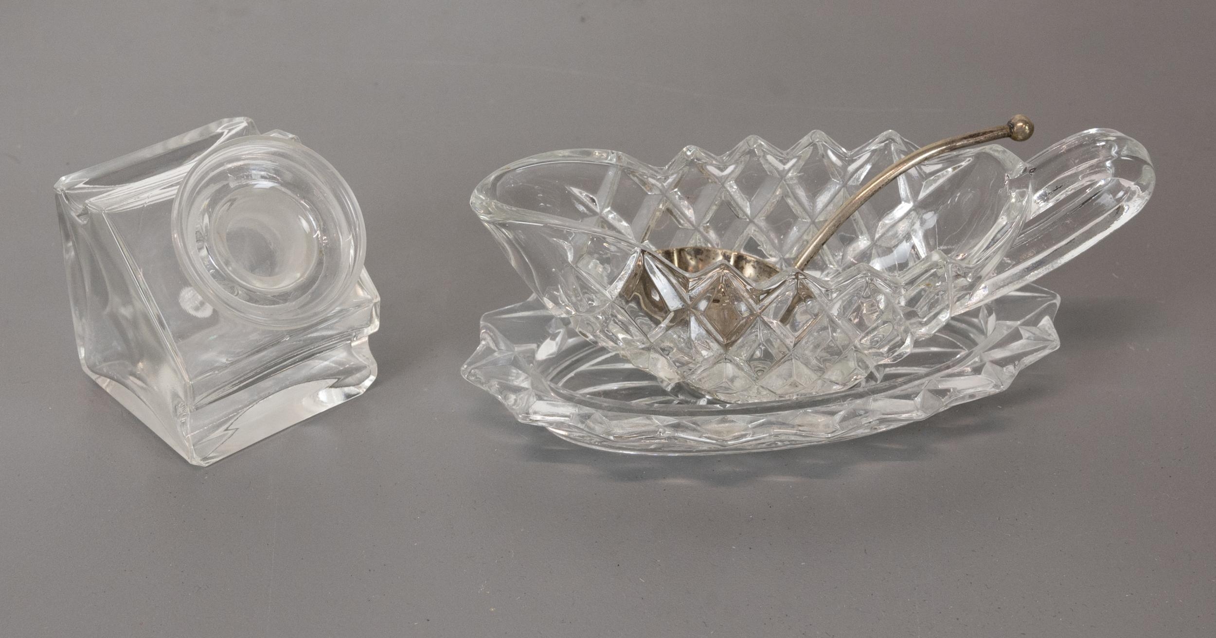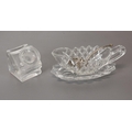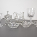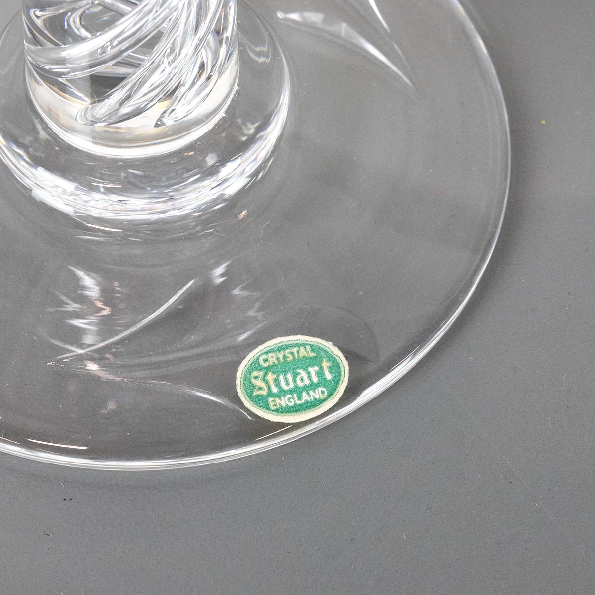 The York Minster etched Stuart glass goblet 1972 (with paperwork) together with crystal and cut glass ware to include a pair of apprentice piece candlesticks joined by twisted rod arches, a pair of hobnail pattern cake plates, inkwell, tazza, fruit bowl and others. 14 pieces