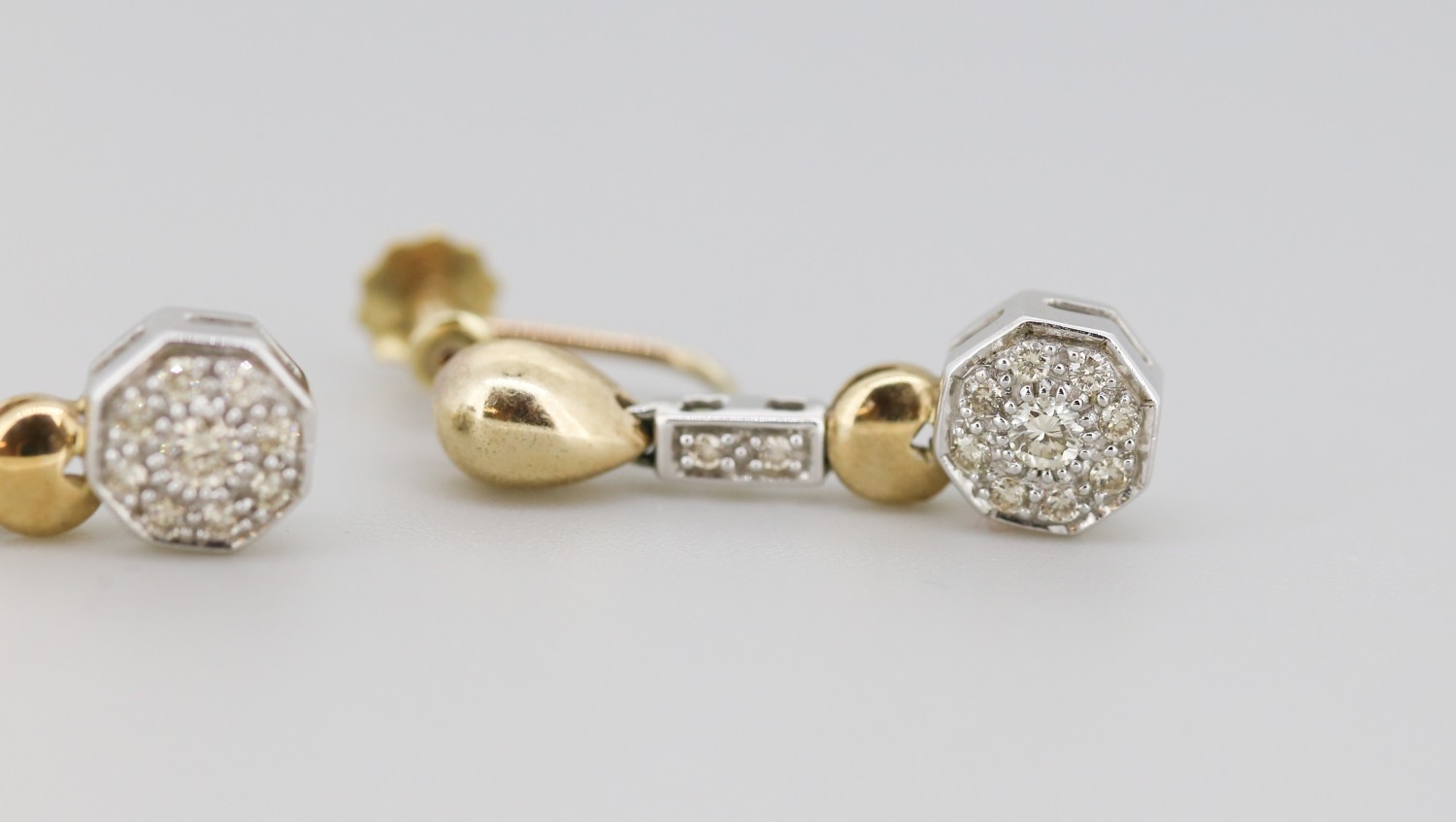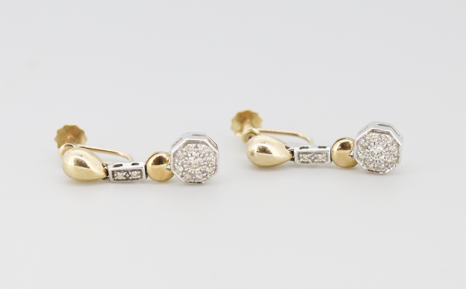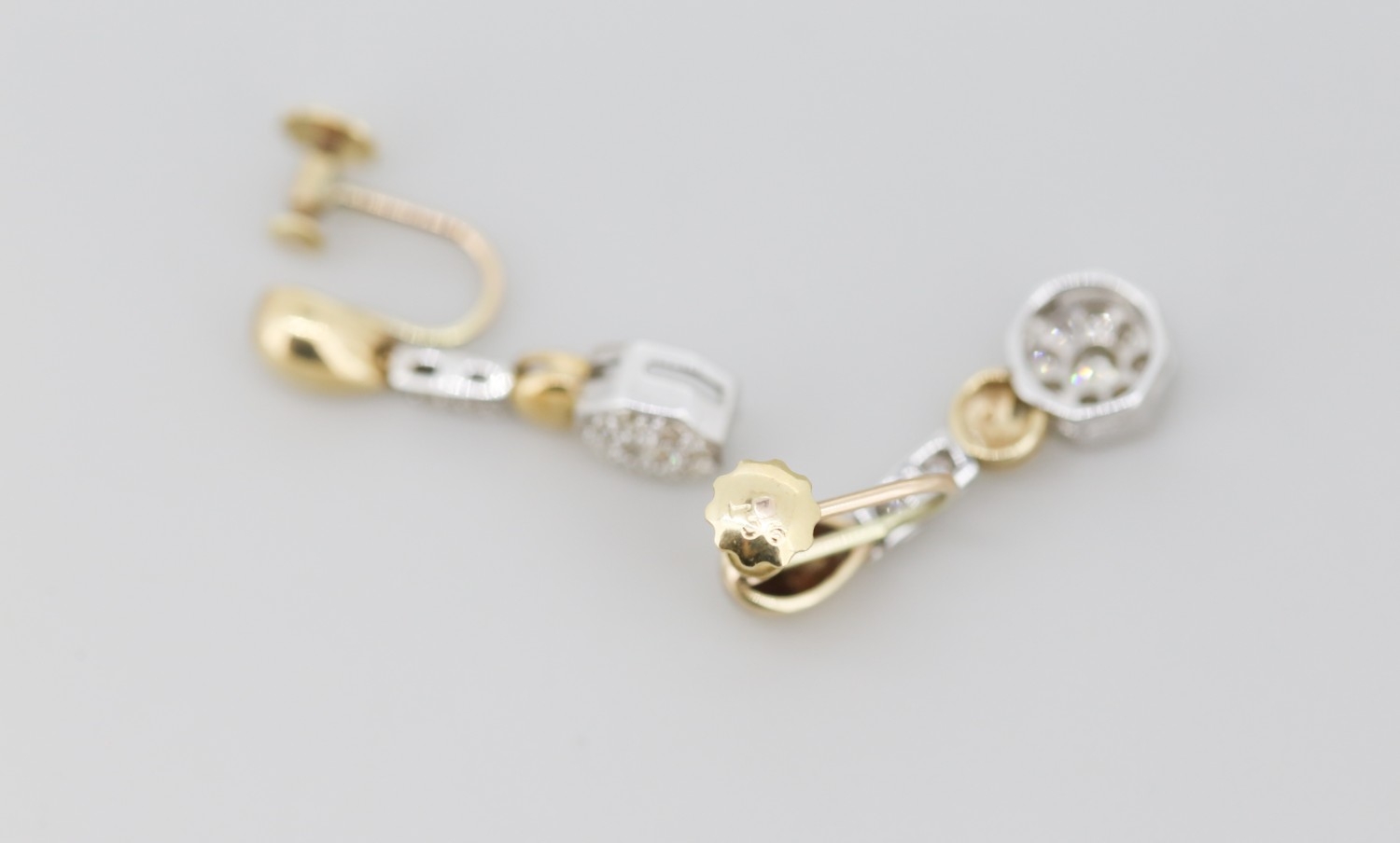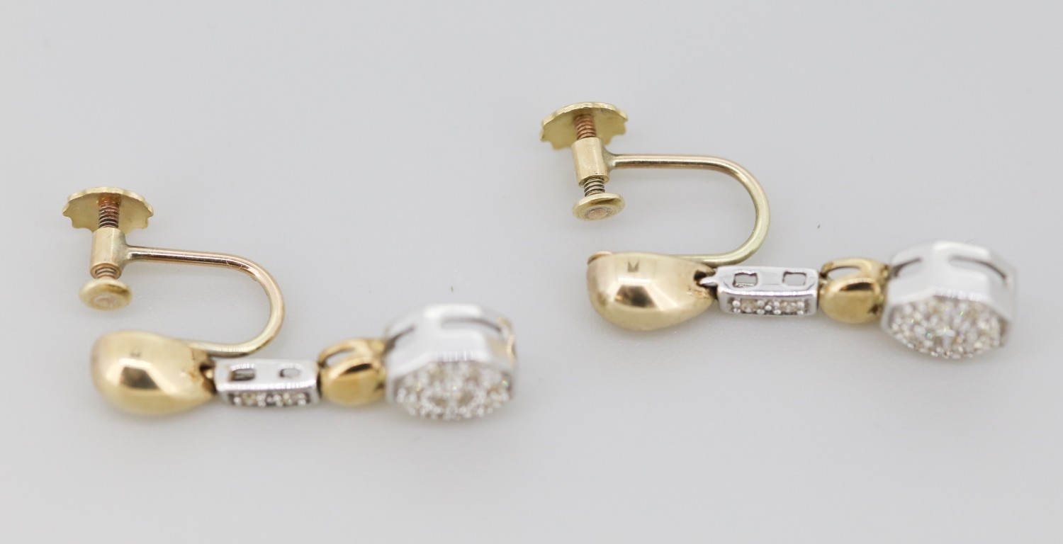 Pair of Finely Detailed Diamond Cluster Set Ladies Drop Screw On Earrings Mounted in 9 Carat Yellow Gold 2.5cm Drop