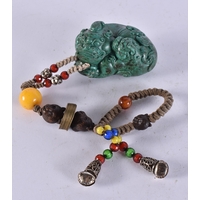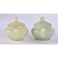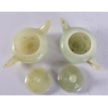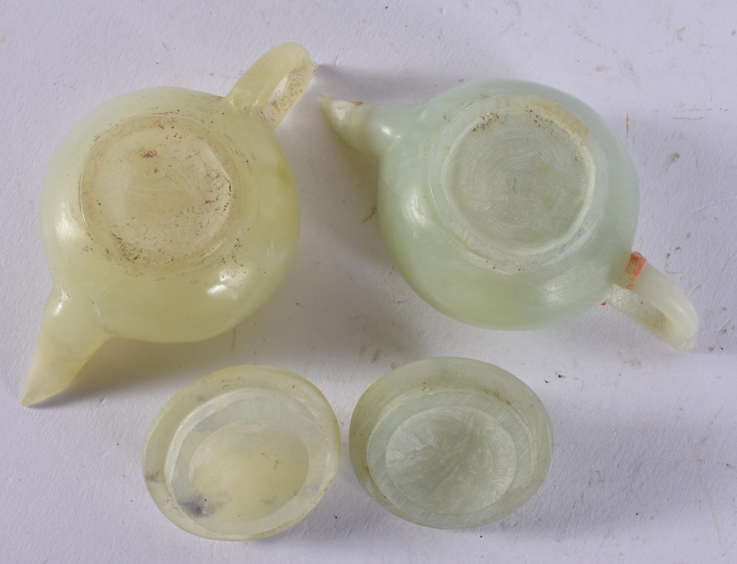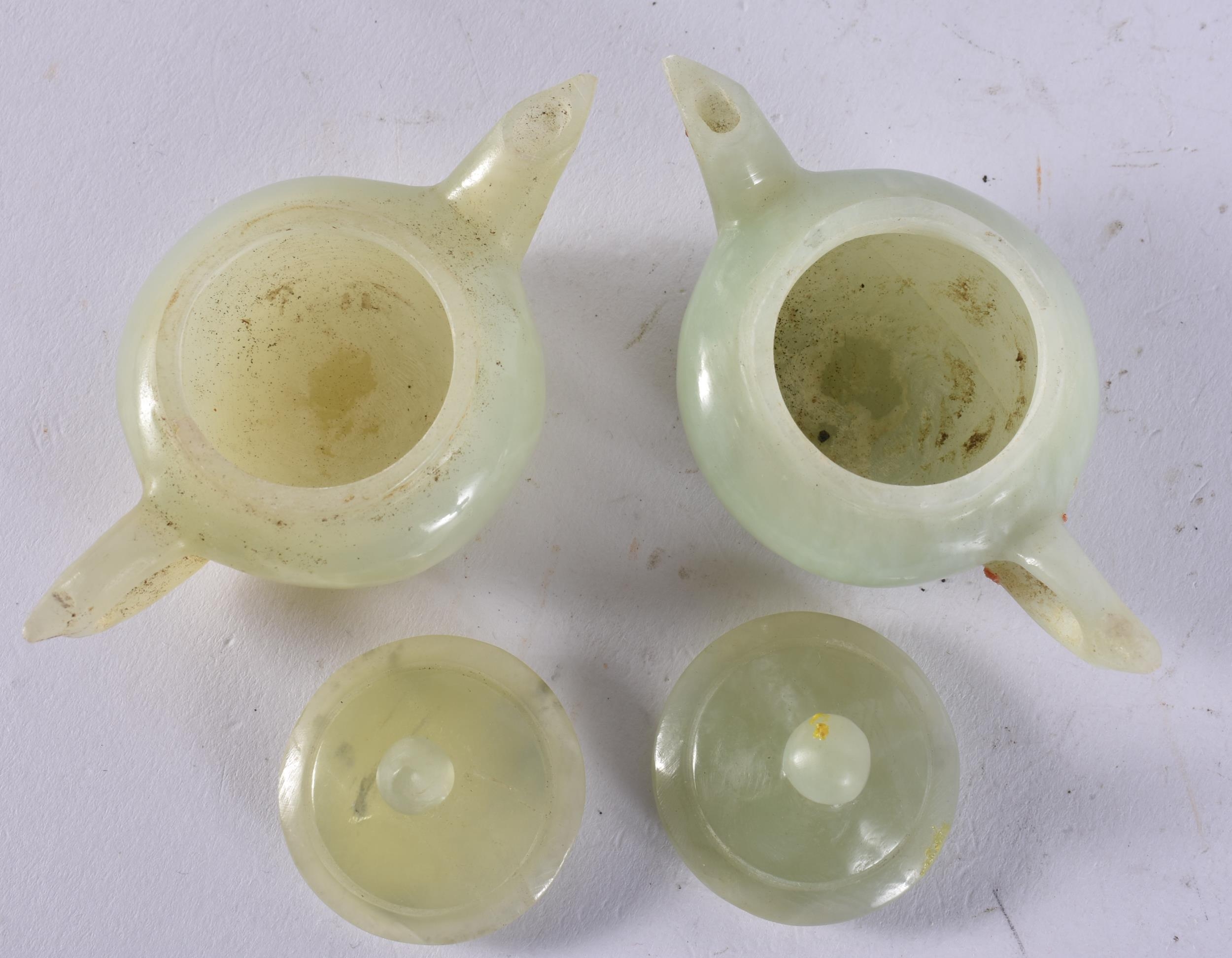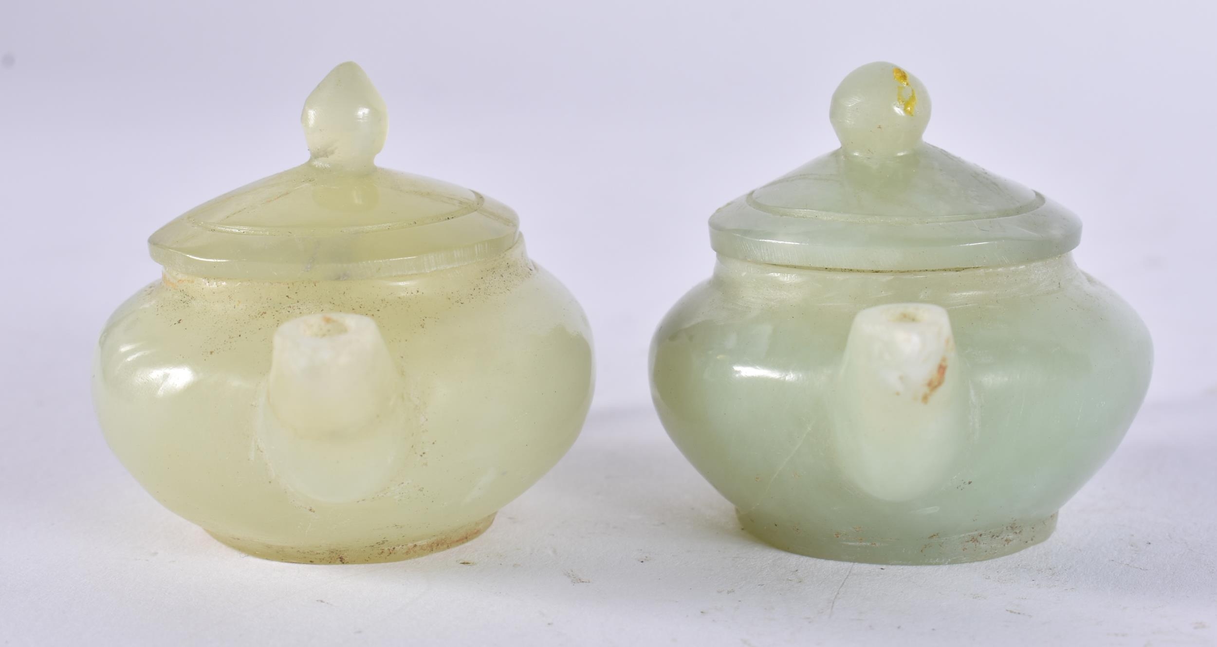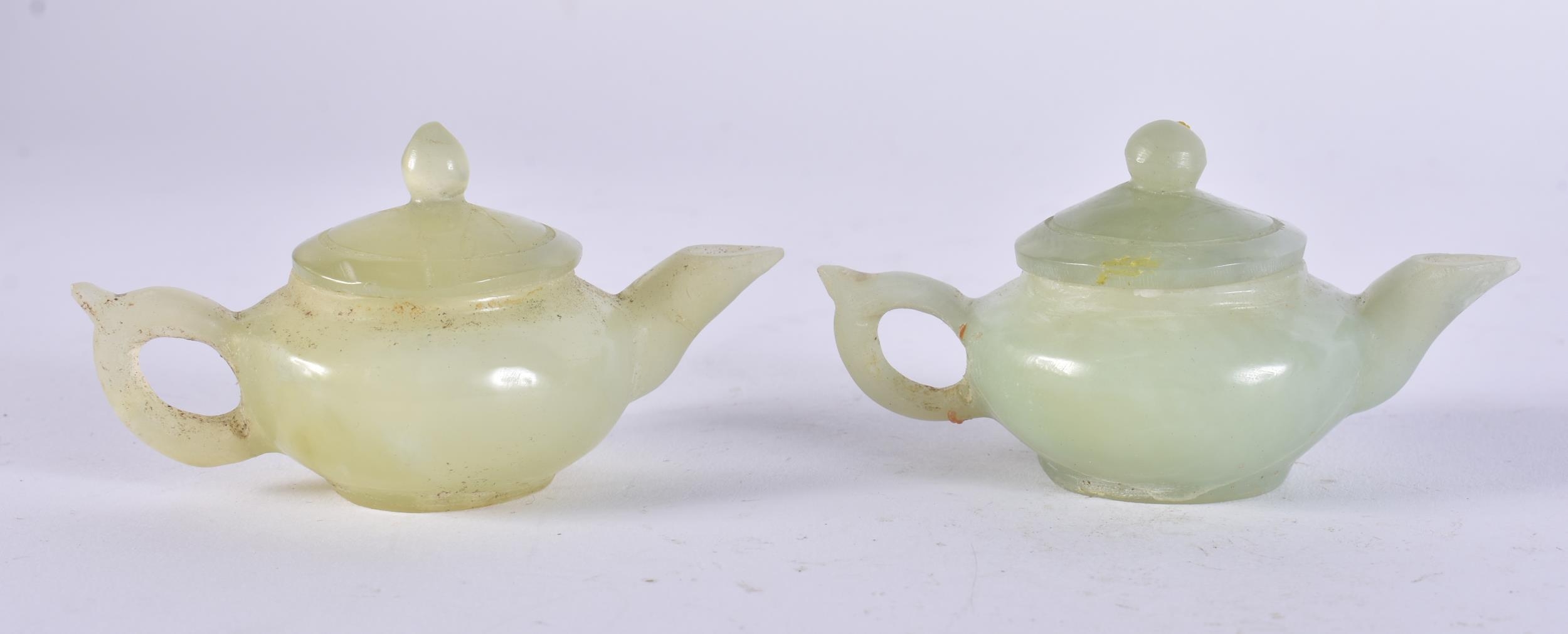 TWO CHINESE JADE TEAPOTS. 126 grams. 8 cm x 4.5 cm. (2)