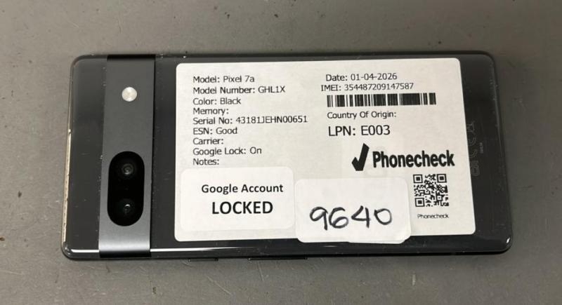 GOOGLE PIXEL 7A/ GHL1X/ BLACK/ GOOGLE LOCKED/IMEI: 354487209...