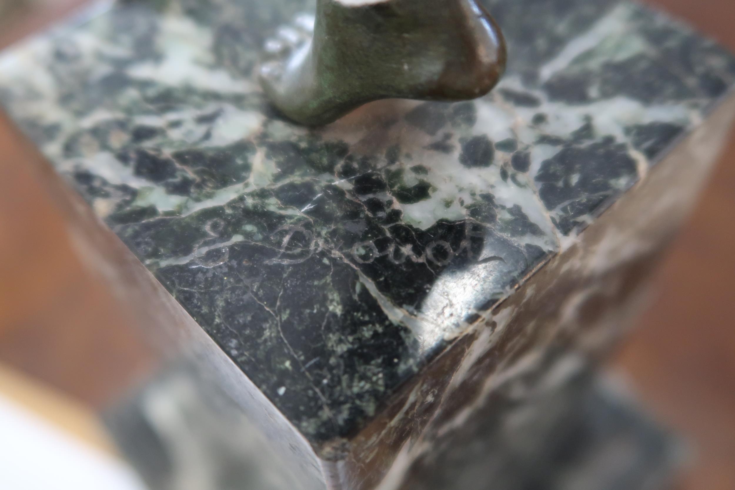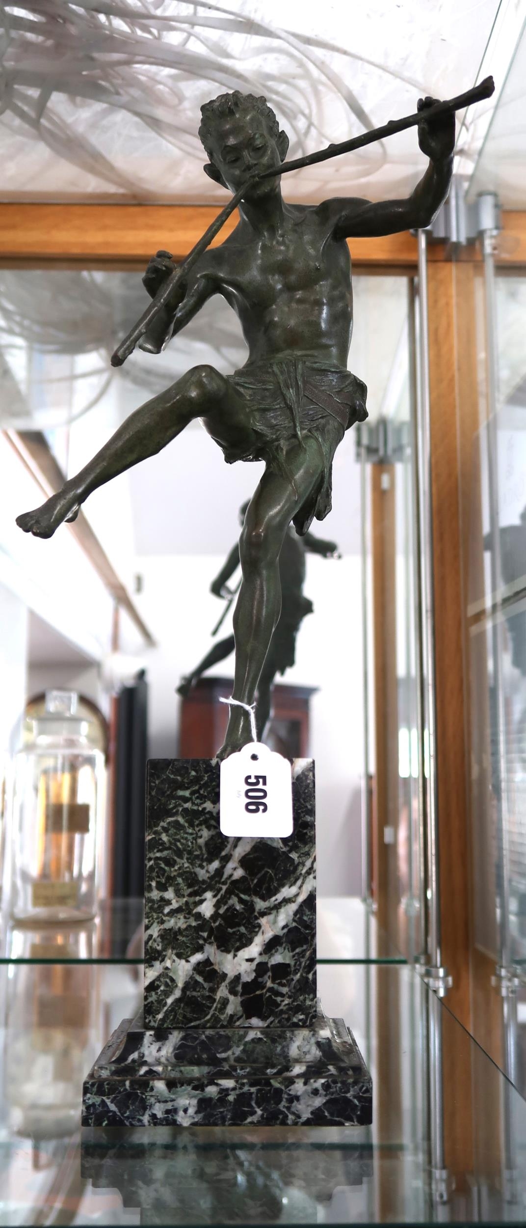 Edouard Drouot (1859-1945): a bronze figure of pan playing his pipes and dancing, on rectangular marble base, signed to the top of the base Drouot, and with small likely foundry mark to the inside ankle, bronze 34cm high, total height 50cm high.
