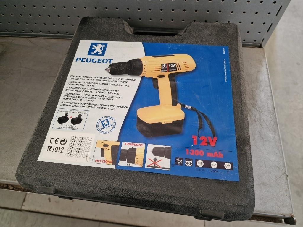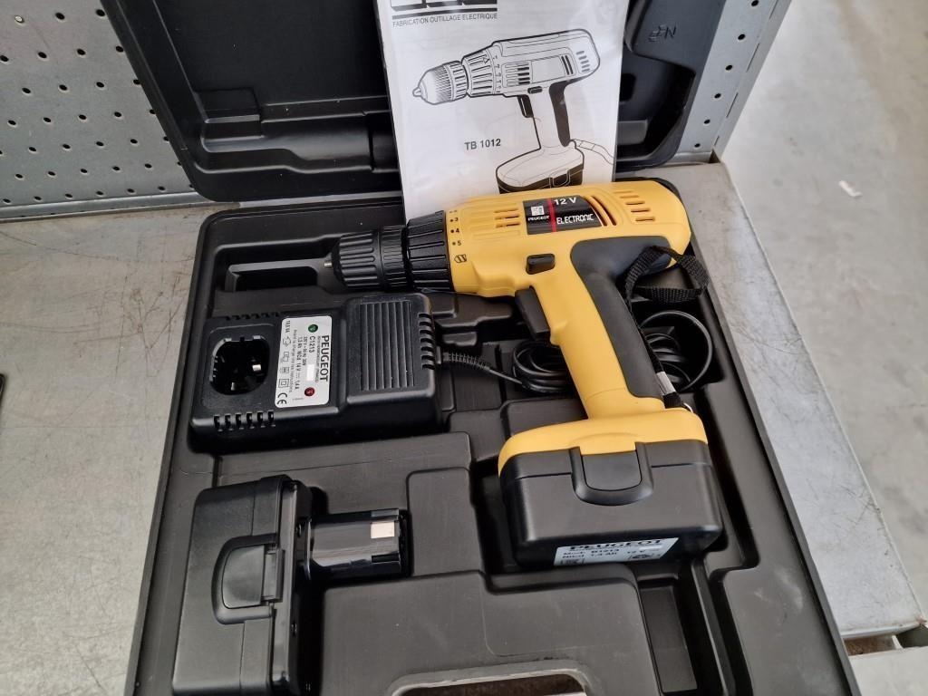 Peugeot 12v Cordless Drill in Hardcase with 2 x Batteries, (Model: TB1012), Looks Unused, Basic Test & Working