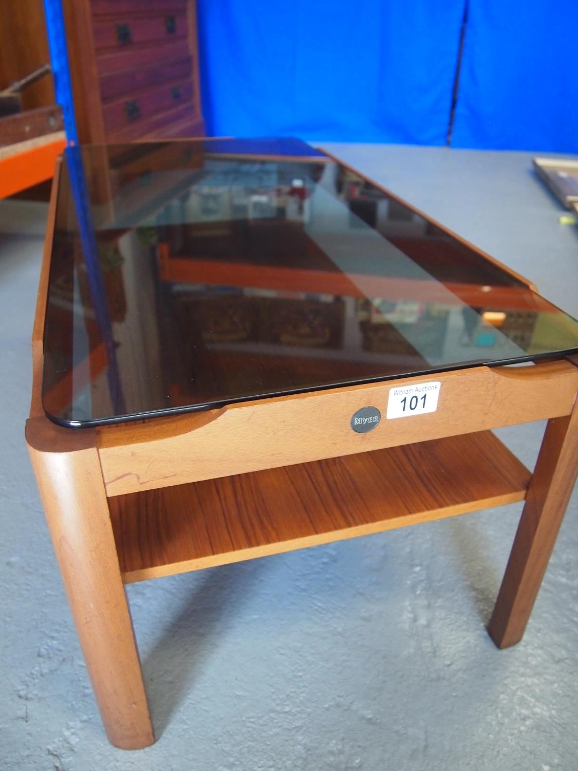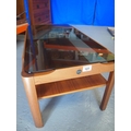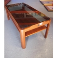 A 1960's Myer teak coffee table with smoke glass top