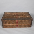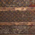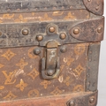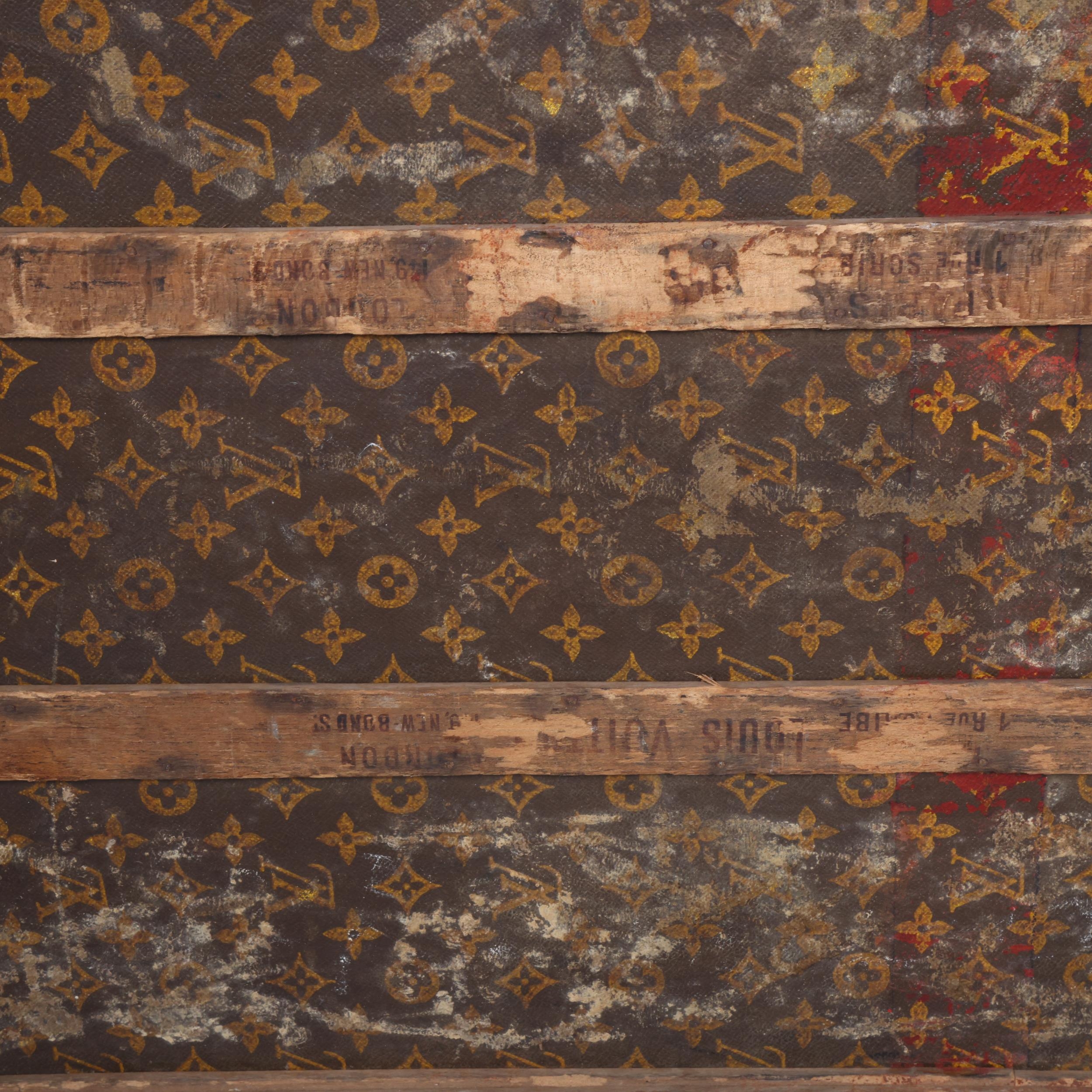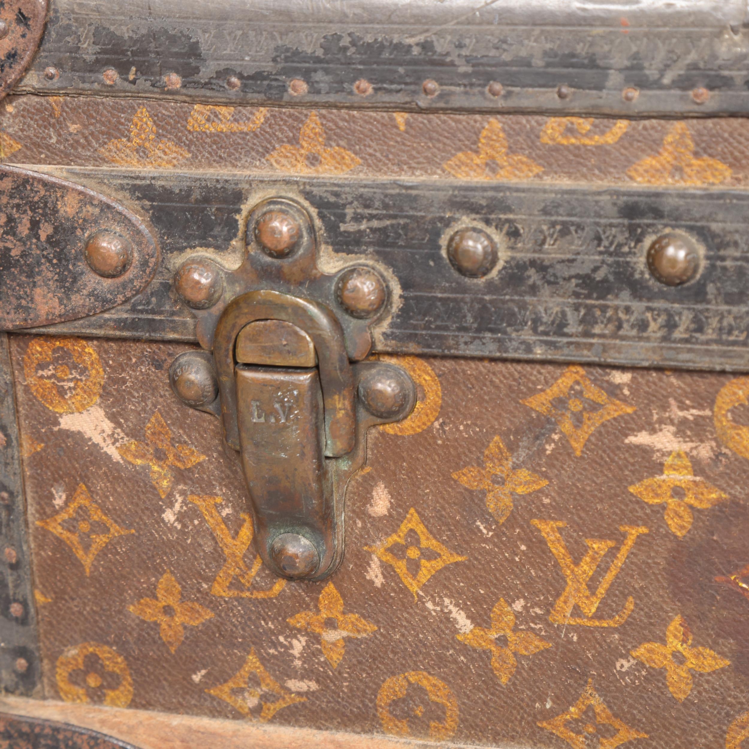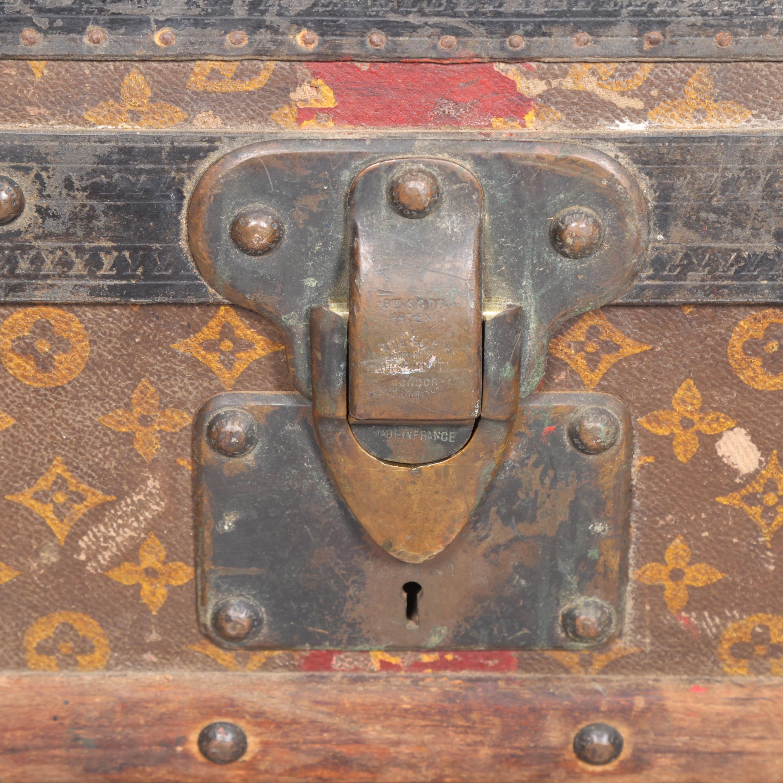 LOUIS VUITTON - a Vintage monogram steamer trunk, brass furniture, lined interior and original label inside, numbered 811036, makers stamp to base, 90cm x 54cm, height 33cm
