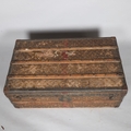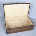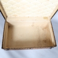 Wear to all outer surfaces, some damage to top, lining to interior coming away at edges.