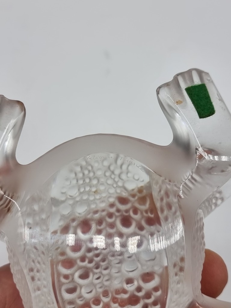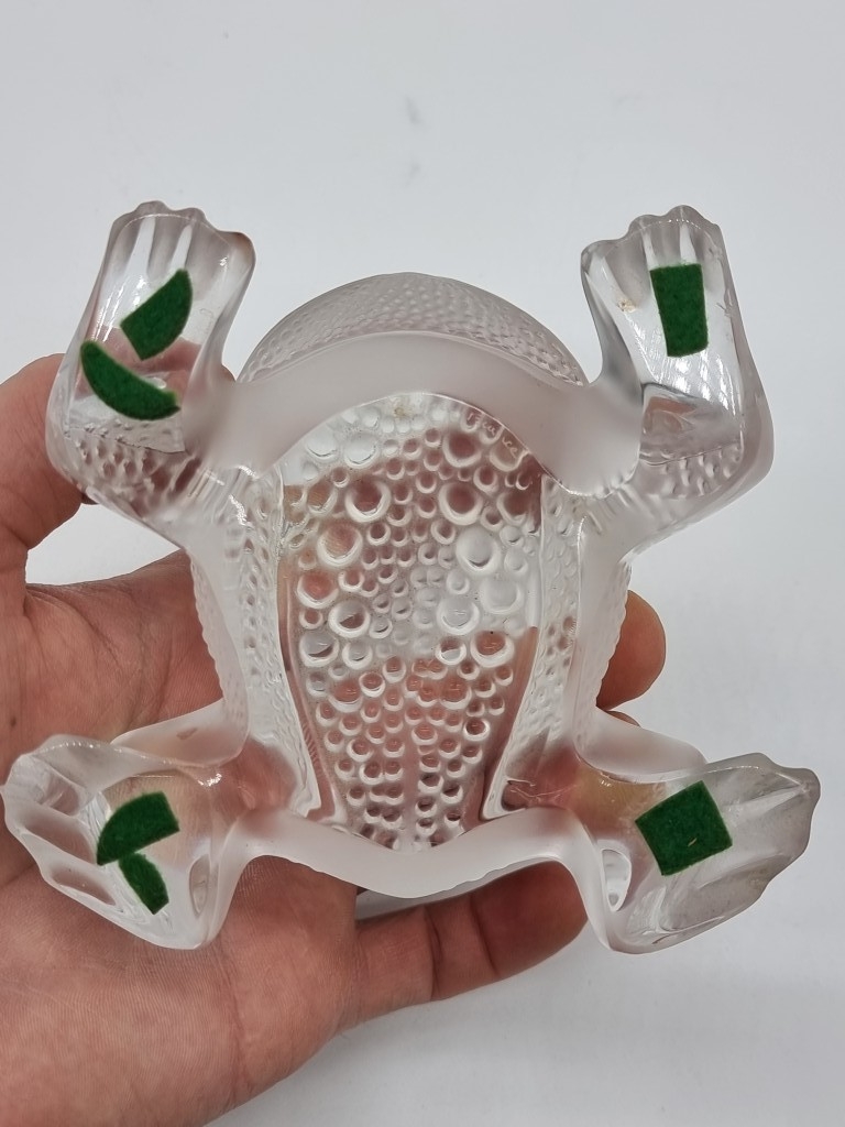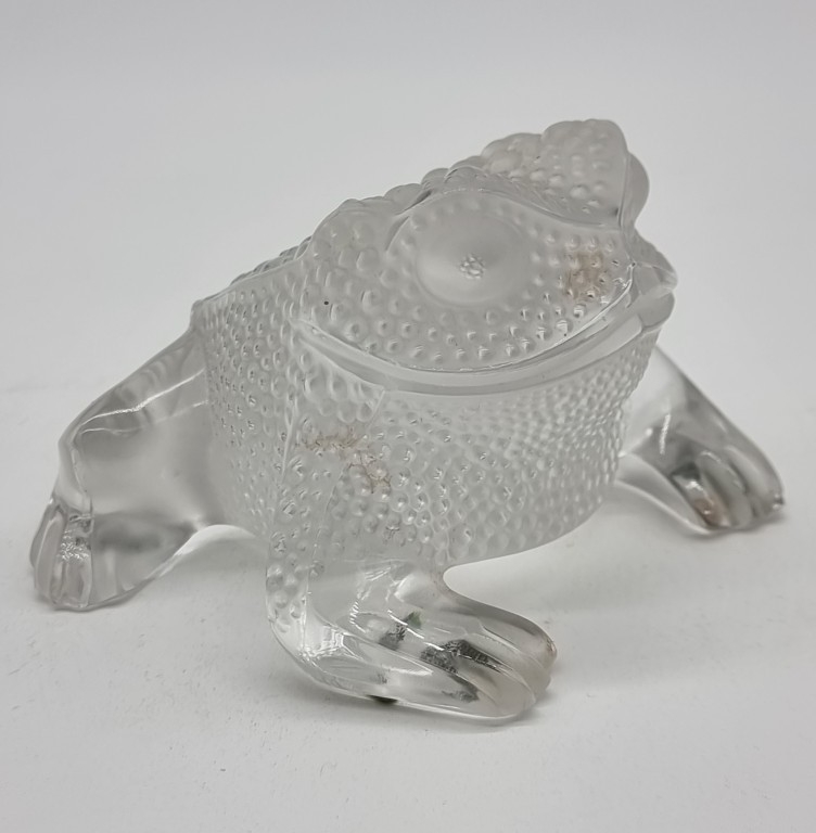 A Lalique glass 'Gregoire' toad/frog, 11cm long, (tiny chips to feet).