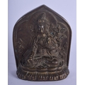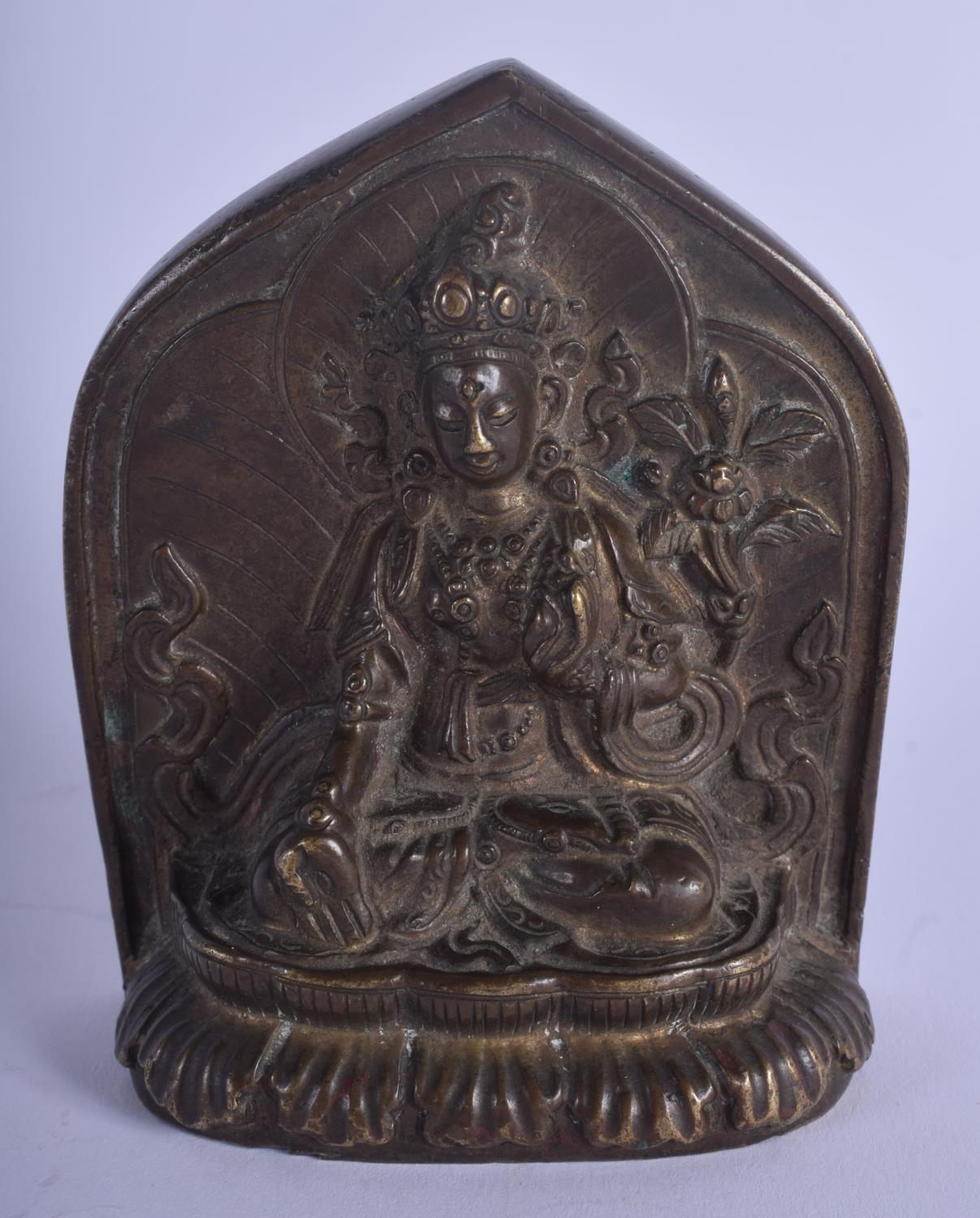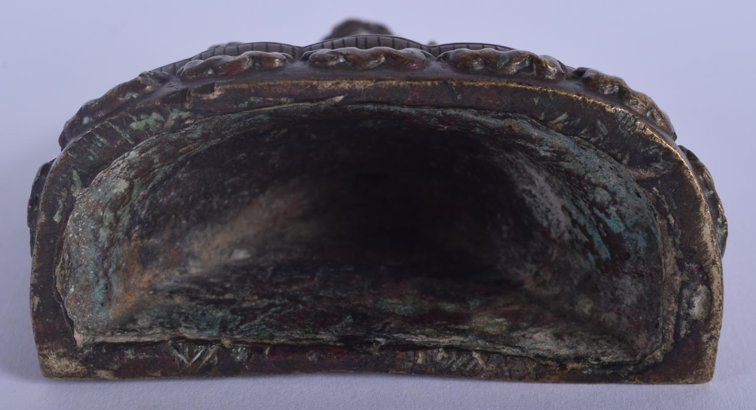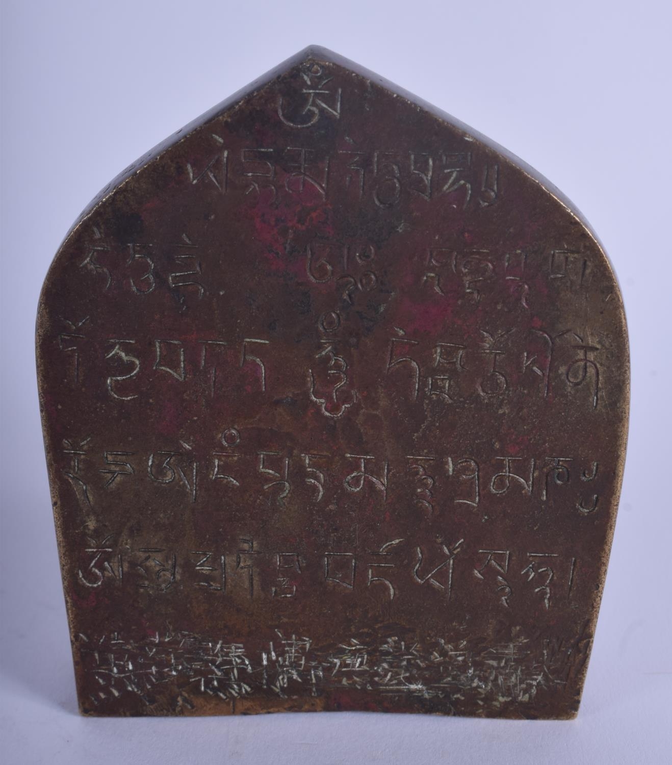 A FINE 18TH/19TH CENTURY CHINESE SINO TIBETAN BRONZE BUDDHISTIC SHRINE Qing, inscribed with calligraphy. 9.5 cm x 7.5 cm.