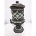 A 19th century Doulton stoneware water filter fountain with original tap, stamp marks to base and underside of cover, (inside rim of cover chipped)