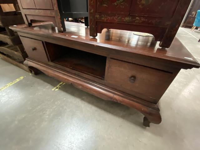 Oriental fruitwood media stand (51H 124W 54D cm)