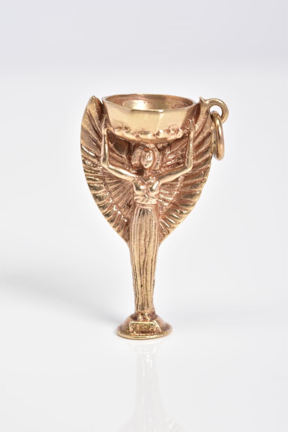 A 1966 JULES RIMET WORLD CUP TROPHY PENDANT, 9ct hallmark rubbed, England 1966 to the base, length 30mm, approximate weight 5.4 grams