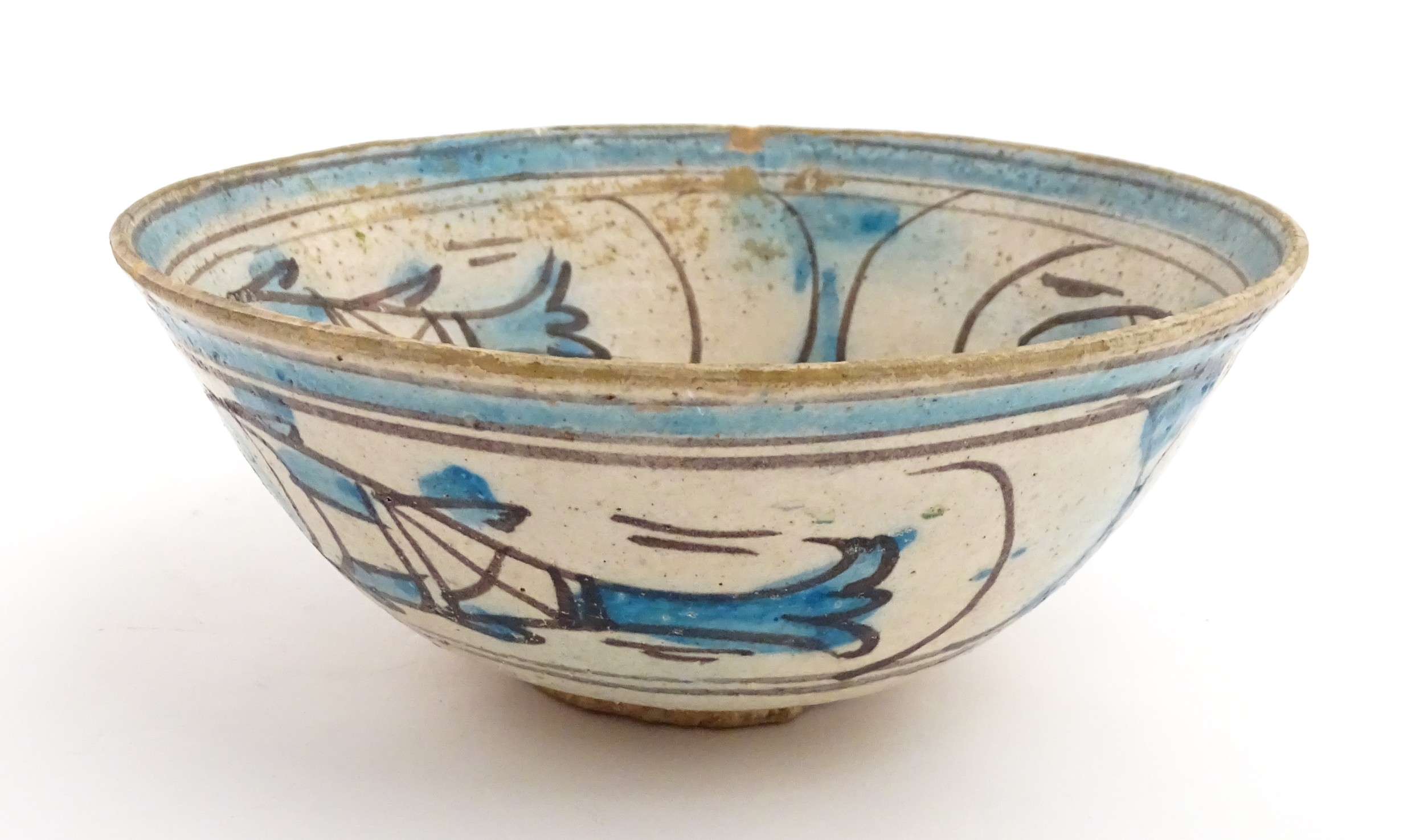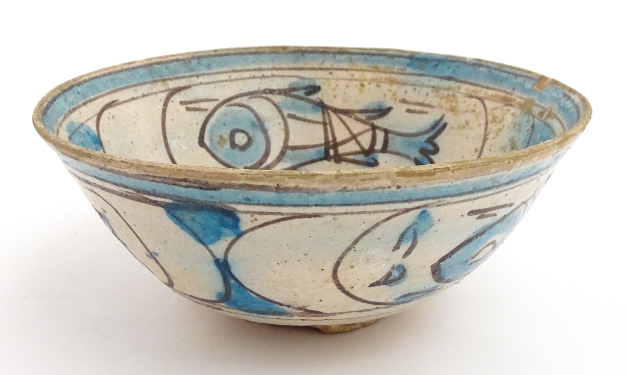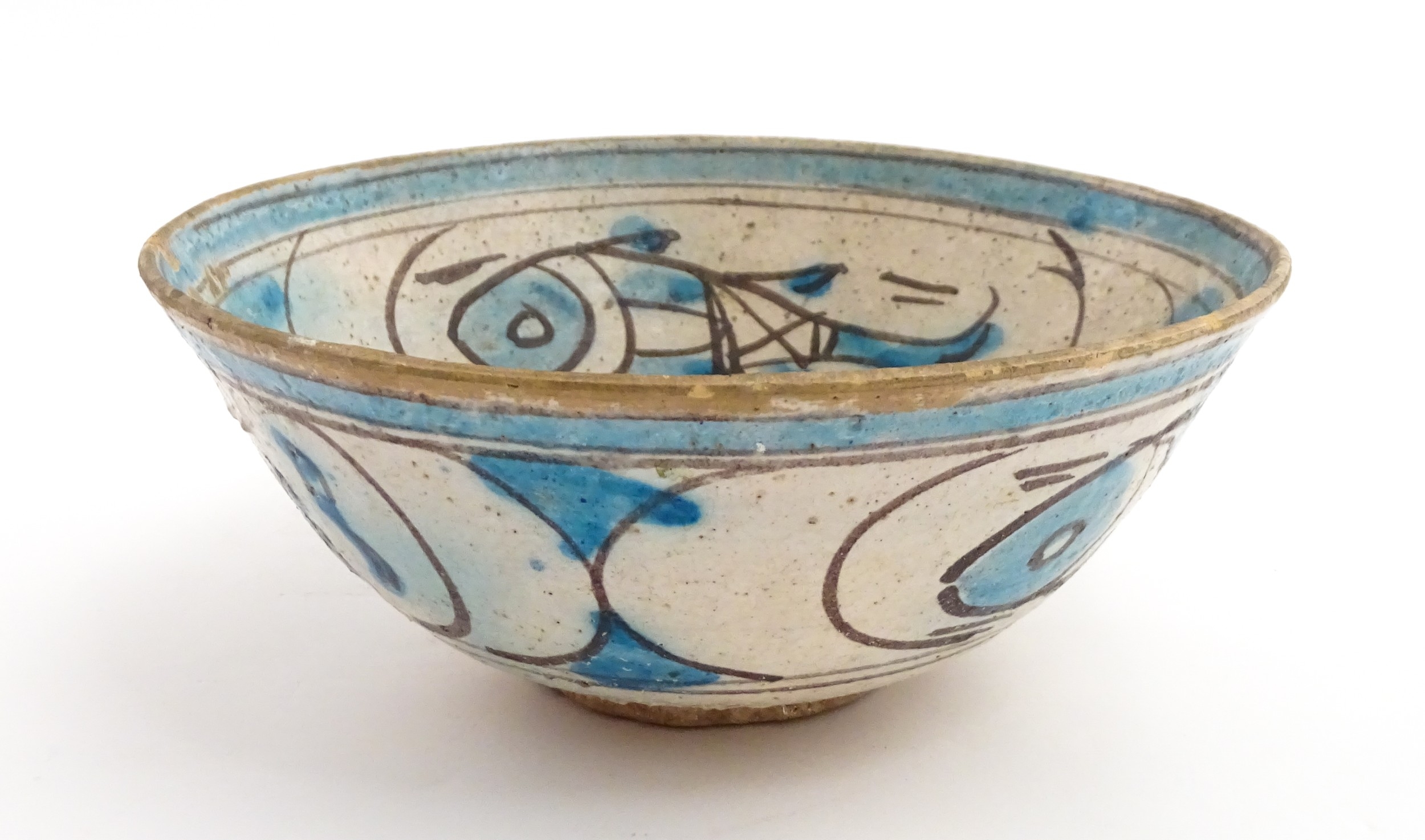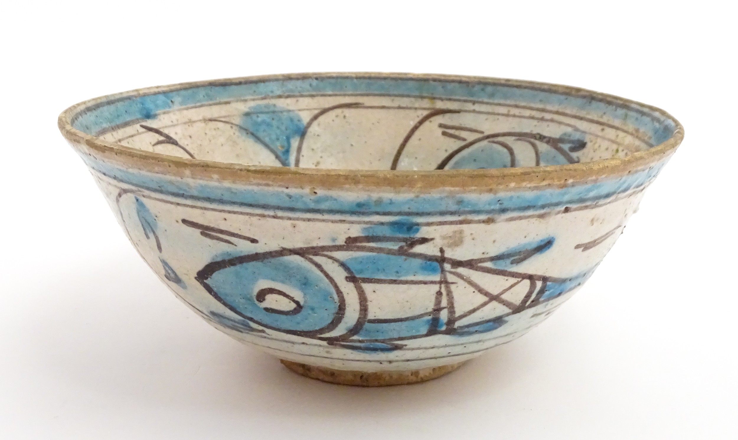 A Continental bowl with decorated with fish and flowers. Approx. 3 1/2" high x 8 3/4" wide