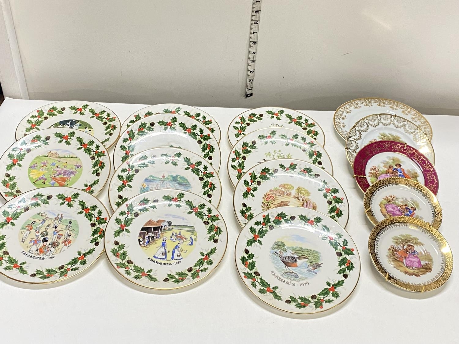A selection of assorted collectors plates including Limoges and dated Christmas plates, shipping unavailable