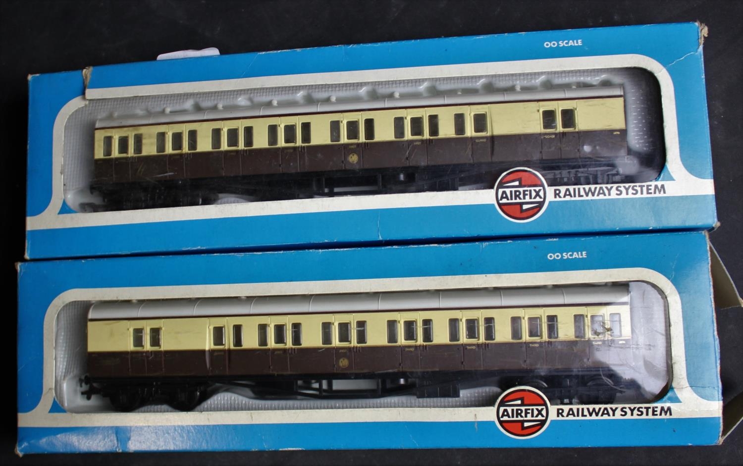 2 AIRFIX GWR 00 GAUGE CHOCOLATE/CREAM COACHES - BOXED