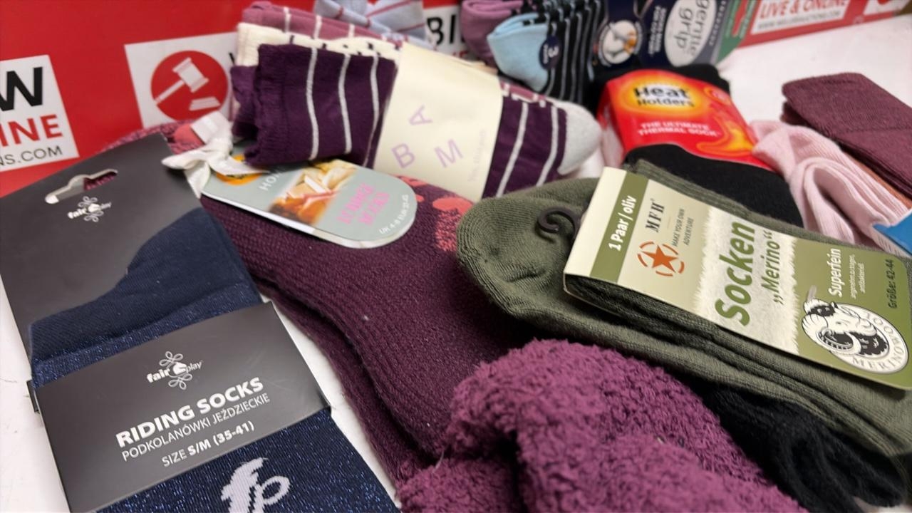 X7 NEW AND PACKAGED SOCK ASSORTMENT INC. HEAT HOLDERS, FAIR PLAY, MFH, ETC