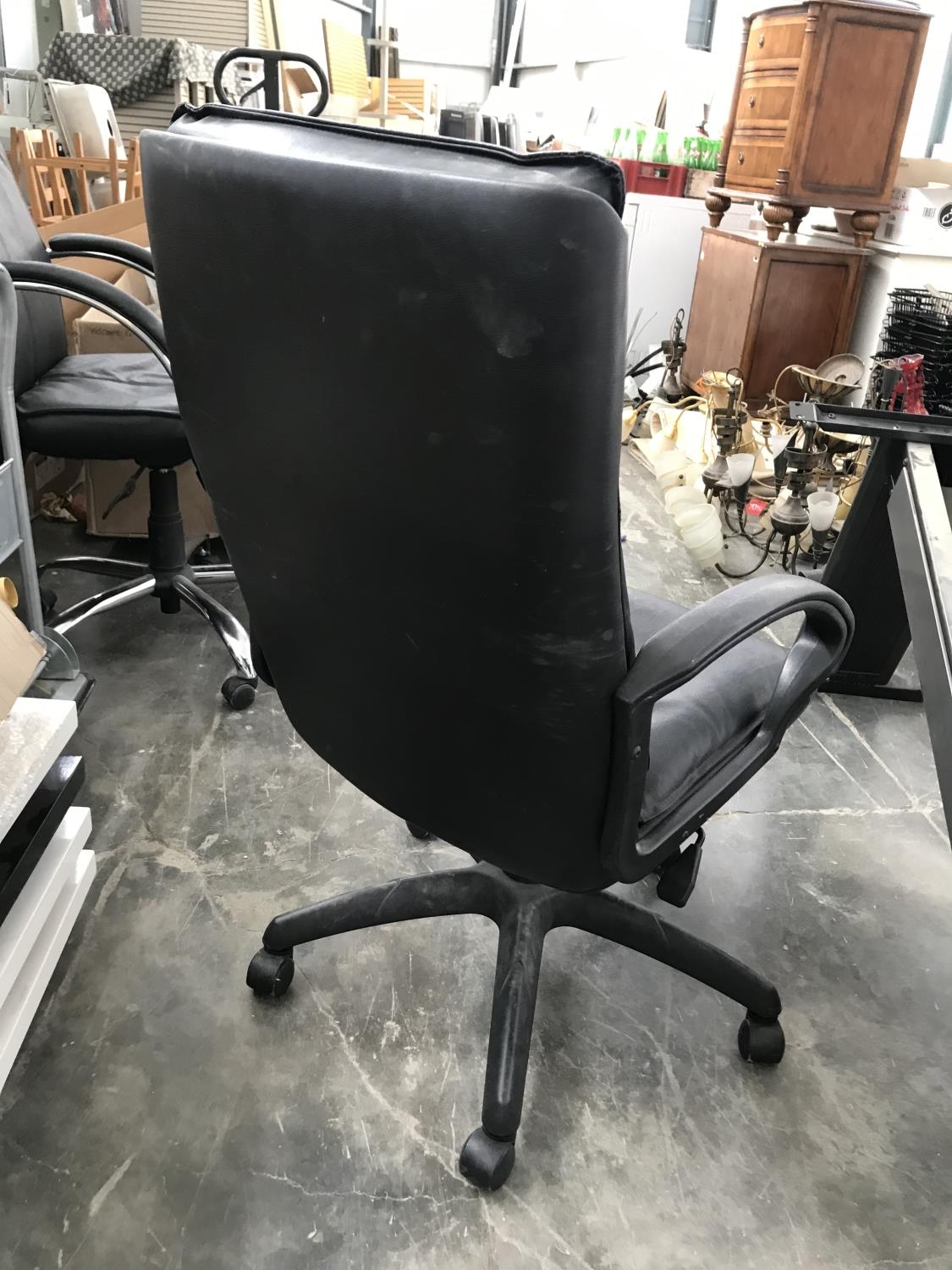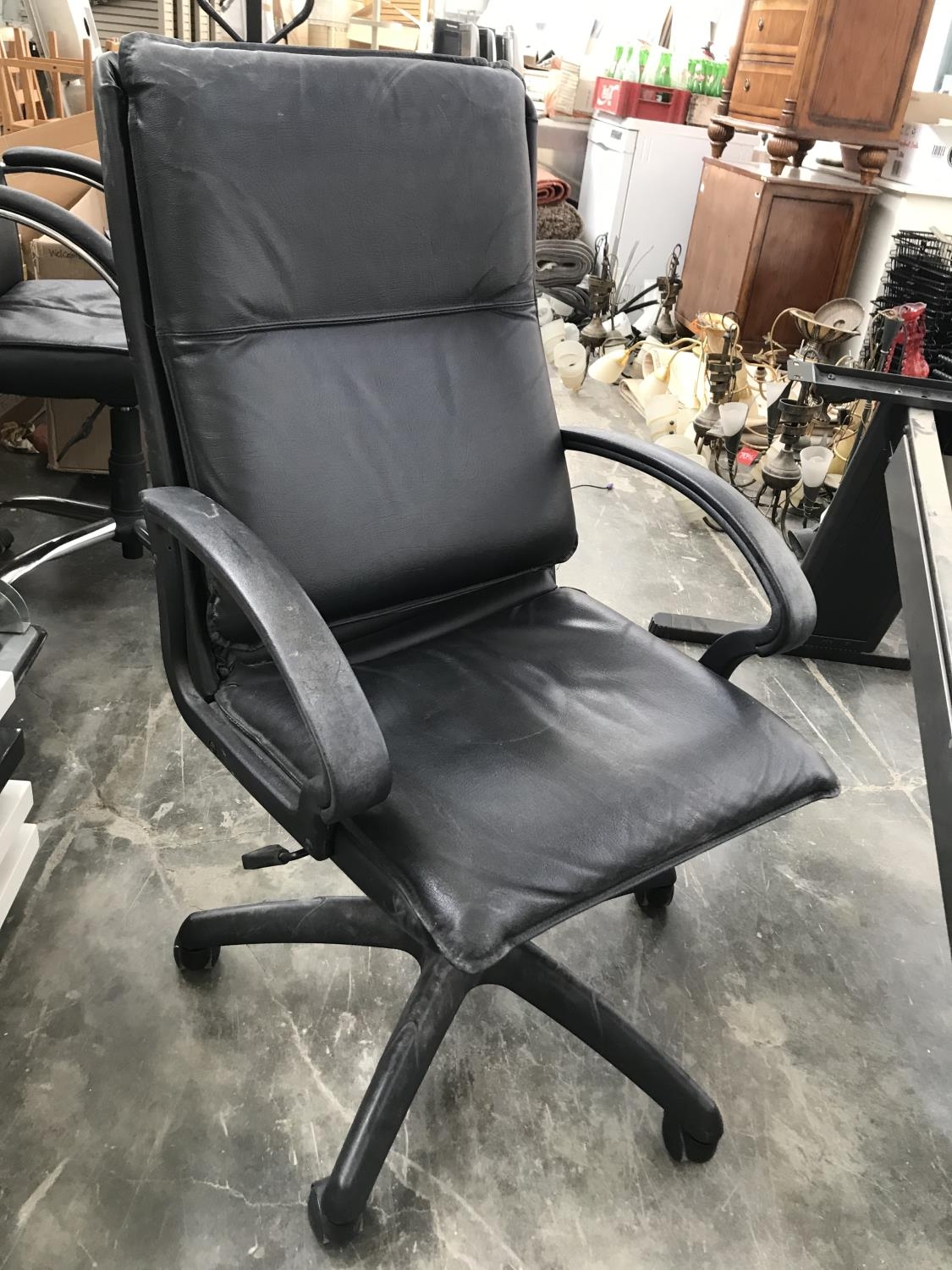 Black Leather Swivel Office Chair on Castors