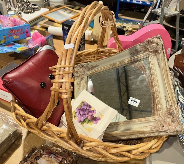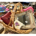 Large Wicker Basket + Shabby Chic Mirror + Leather Cushion