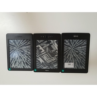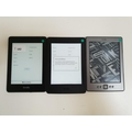 comprising a Paperwhite 3 7th generation, serial number G090 G105 6254 0G94; a Paperwhite 4 10th generation, serial number G000 T607 8317 0577; and a 4 No Touch Silver, serial number B00E 1501 1433 04A9