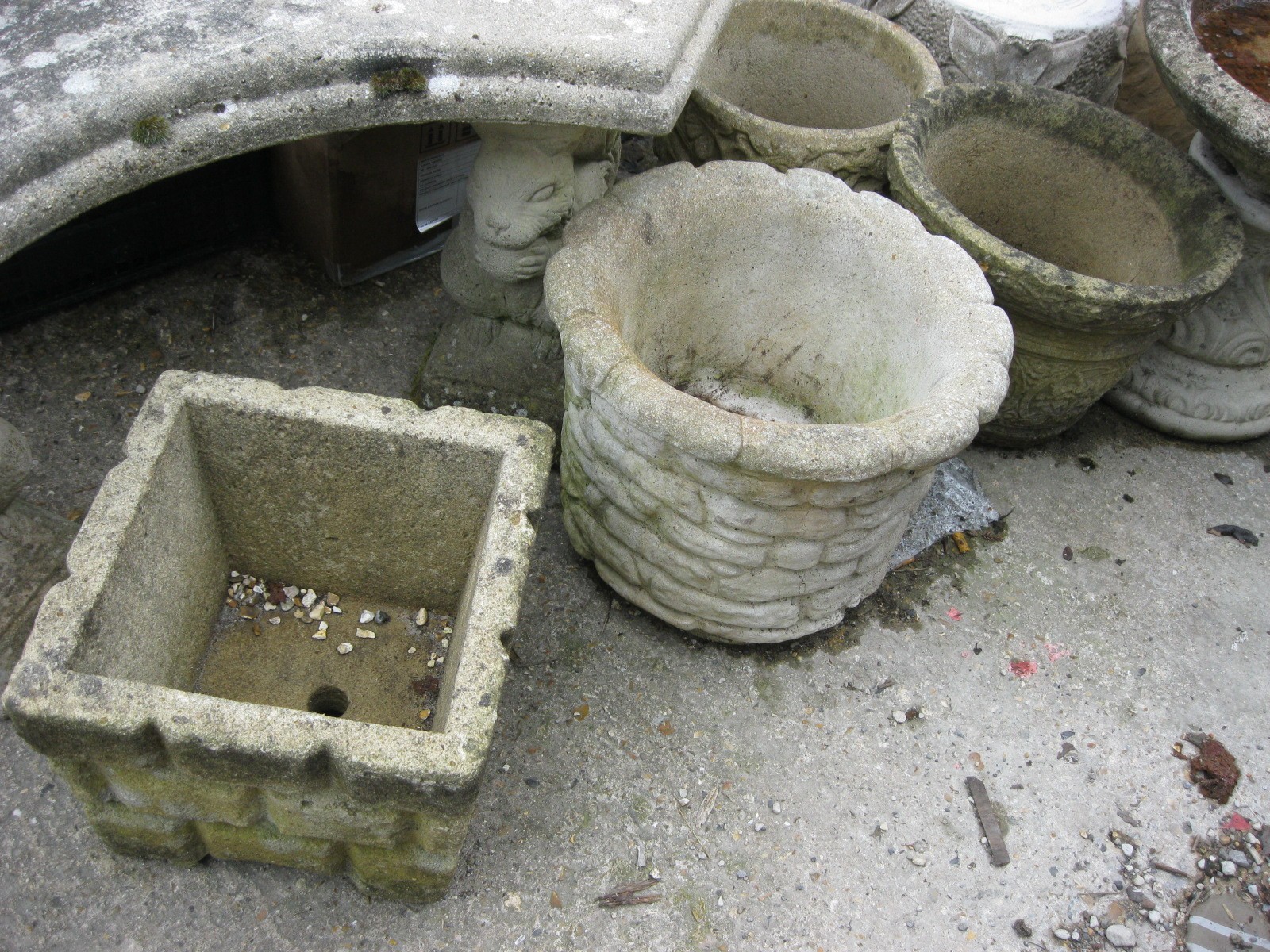 4 stonecrete garden planters in various styles, all in good order
