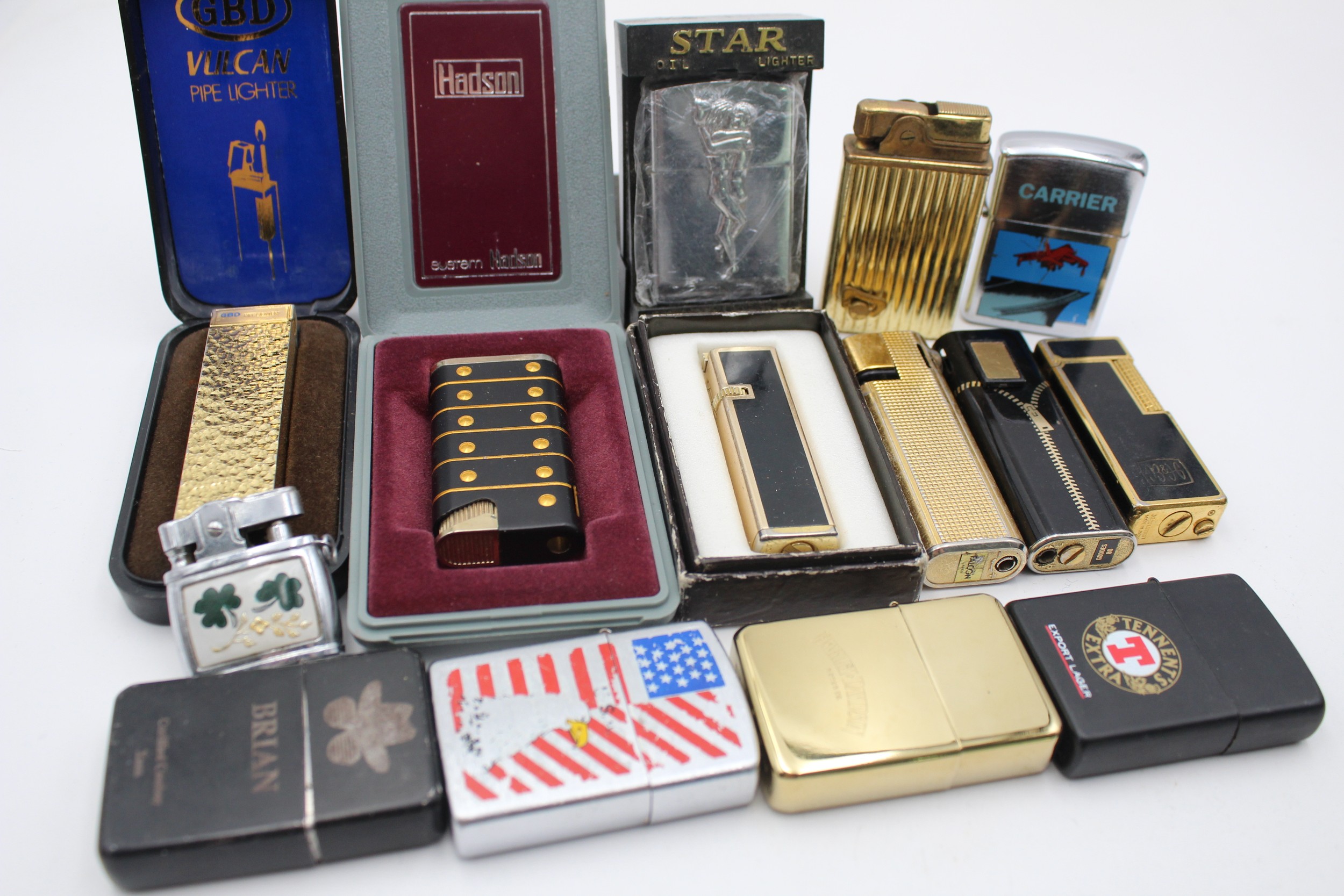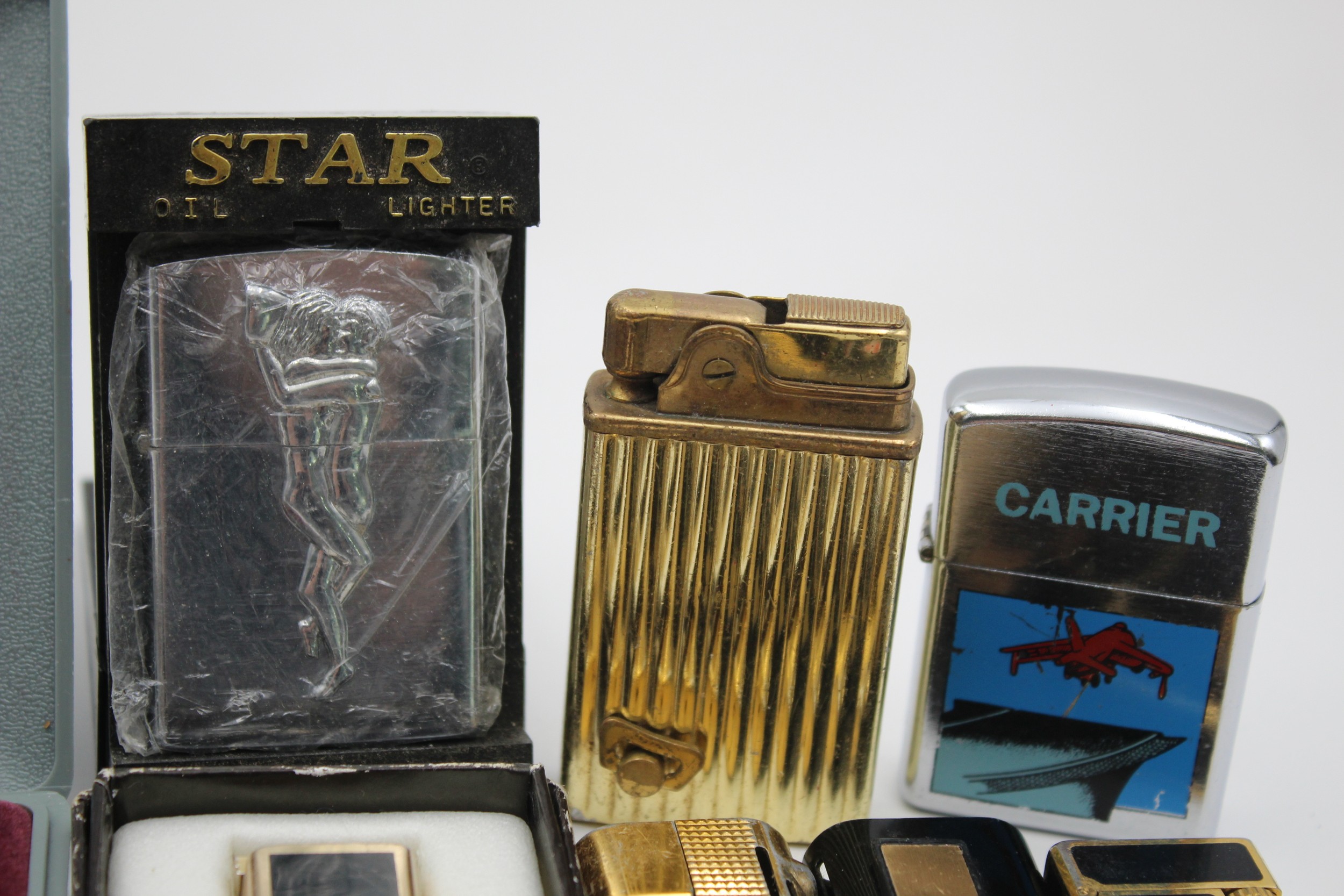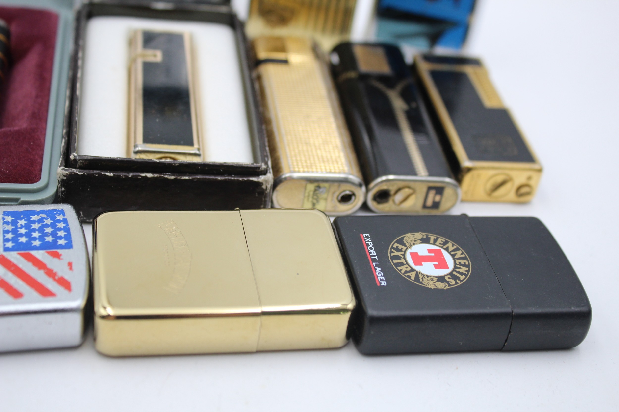 14 x Assorted Vintage BRANDED Cigarette LIGHTERS Inc Boxed, Maruman, Penguin Etc