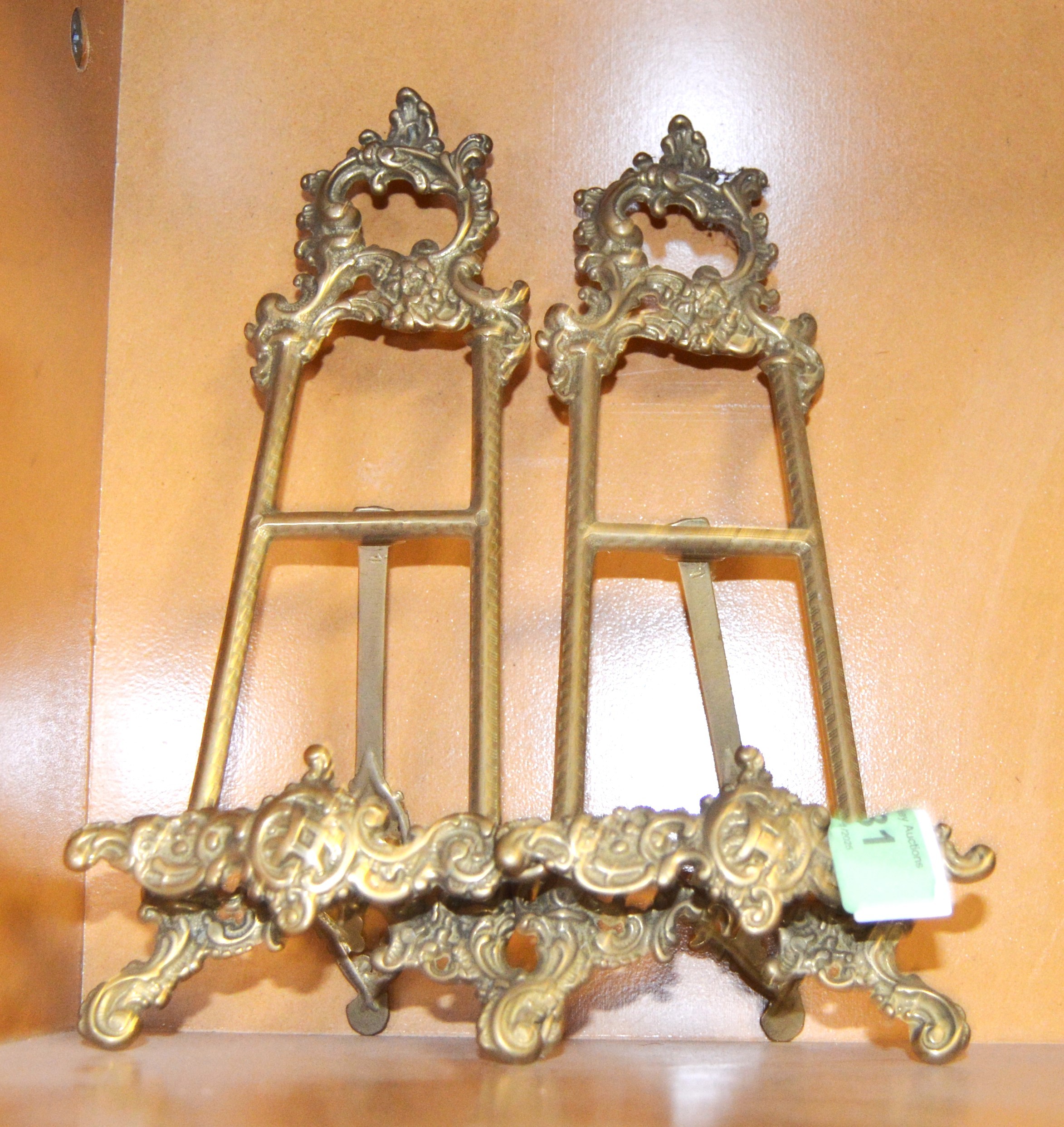 Two Brass Picture "Easel" Stands