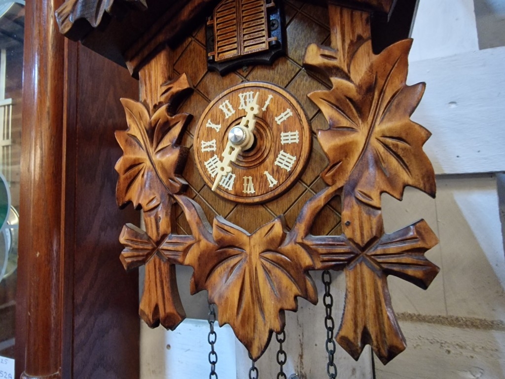 Wall Hanging Wooden Cuckoo Clock, Quartz, Untested, (Note, Weights a/f)