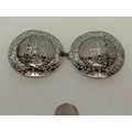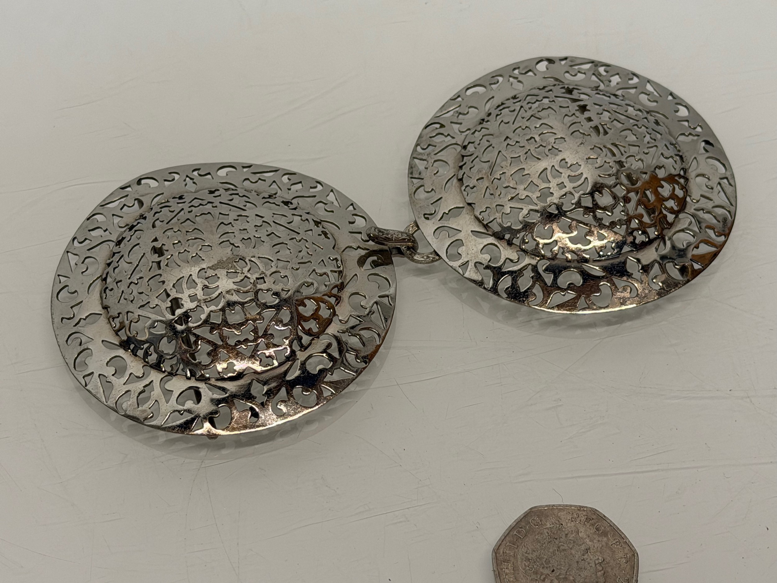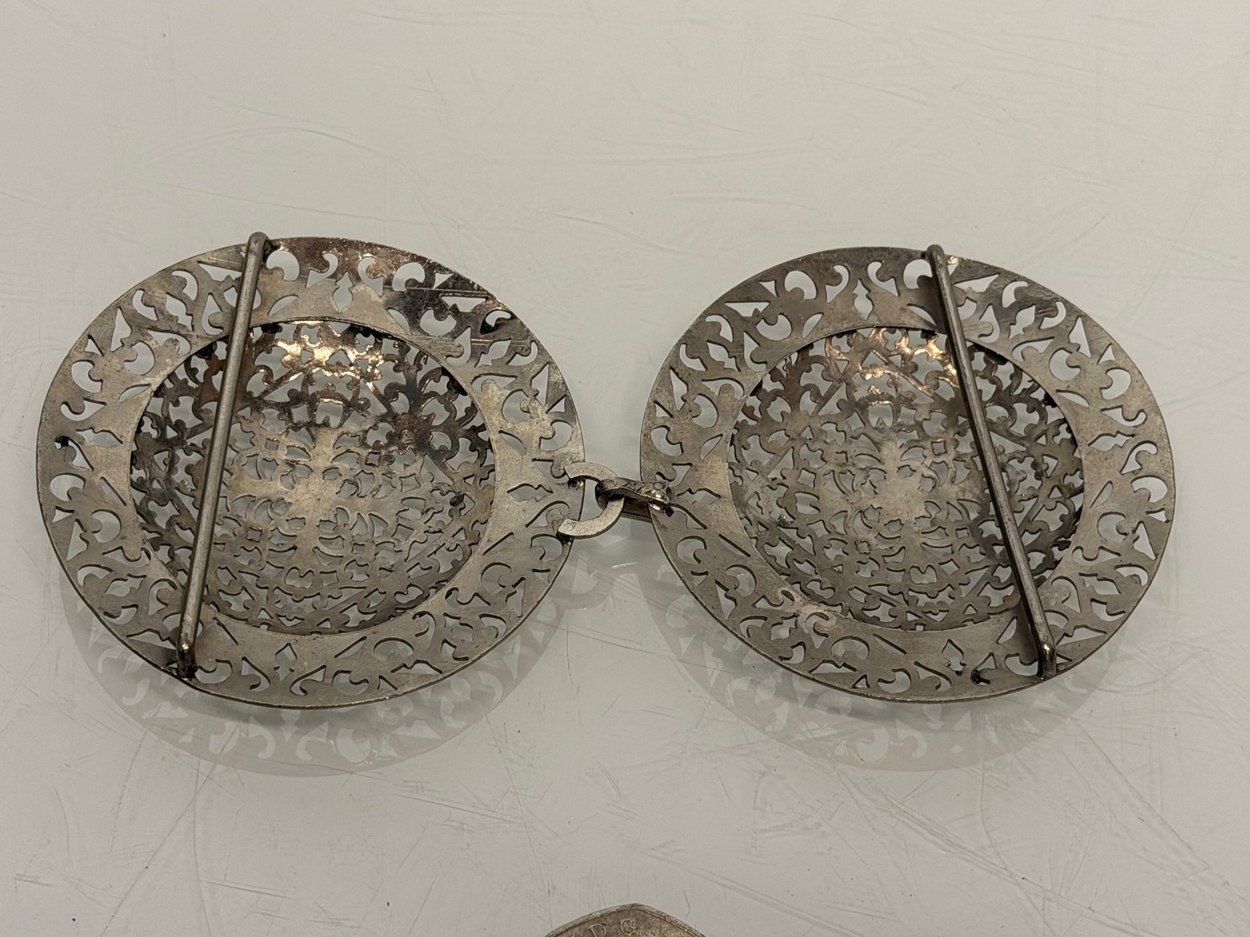 Large white metal belt buckle.This lot is available for in-house shipping.