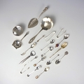 A selection of silver, white metal and silver coloured flatware, including a near matched silver tea strainer and holder, Viner’s Ltd, Sheffield 1966/67, various hallmarked teaspoons, including tourist spoons, sugar tongs, further flatware marked ‘800’ and a silver coloured bottle opener, gross weight of hallmarked pieces 7ozt (qty) (at fault)