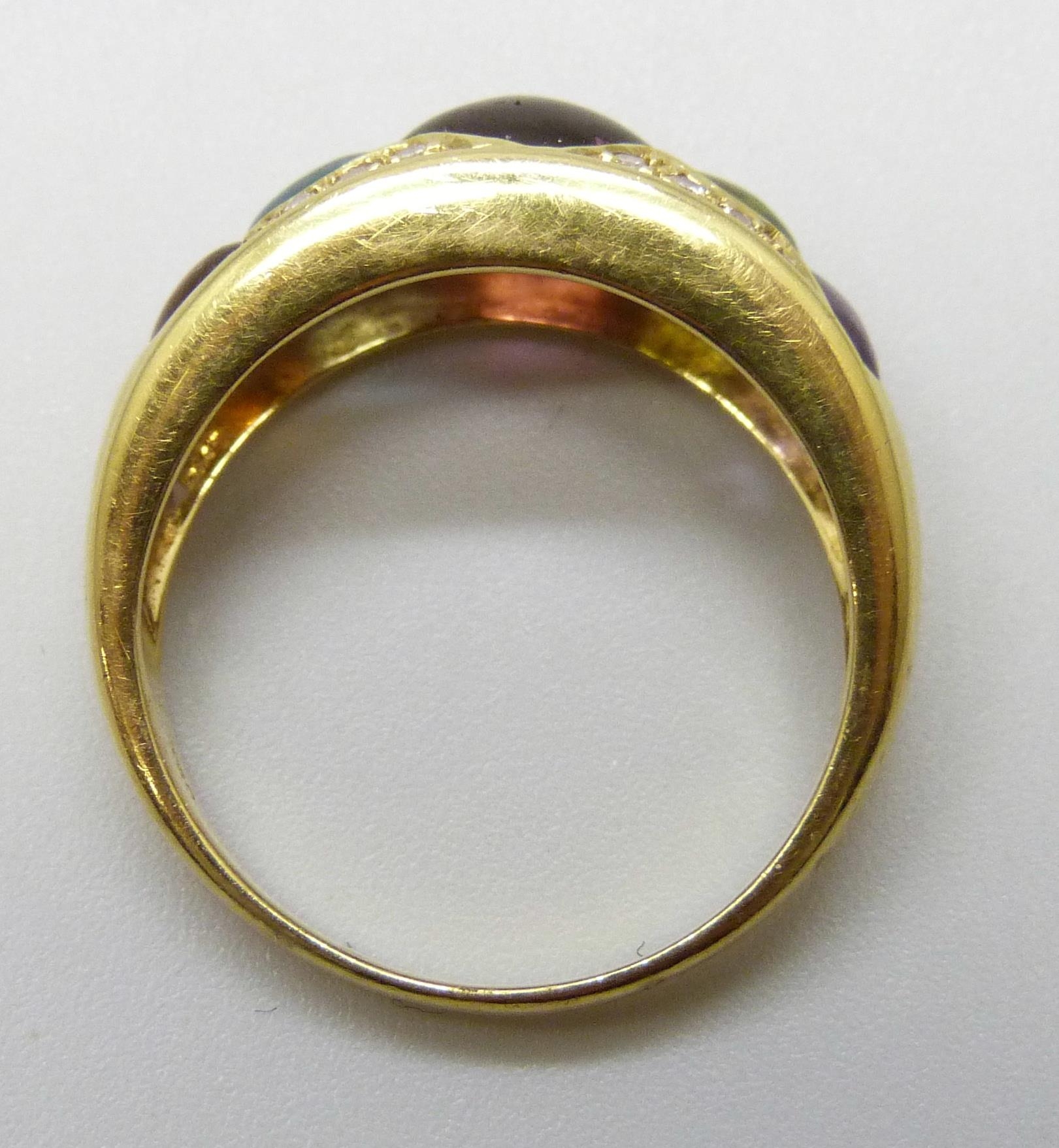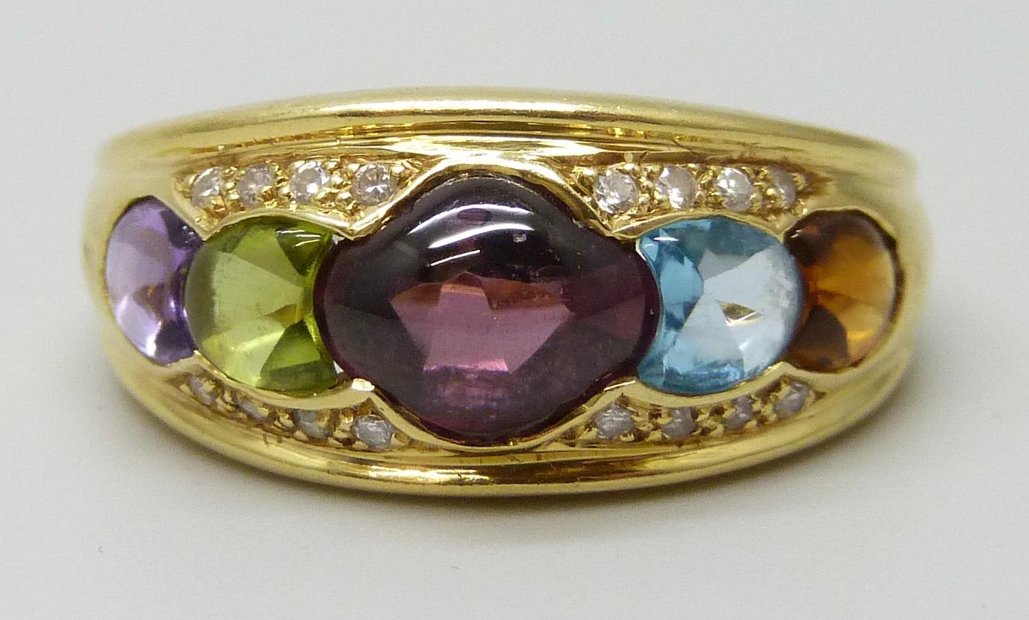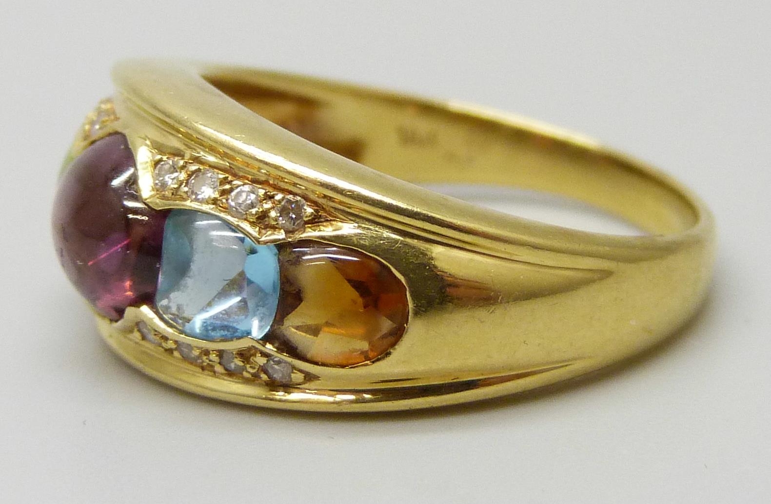 An 18ct gold multi gemstone set ring, 5.7g, P