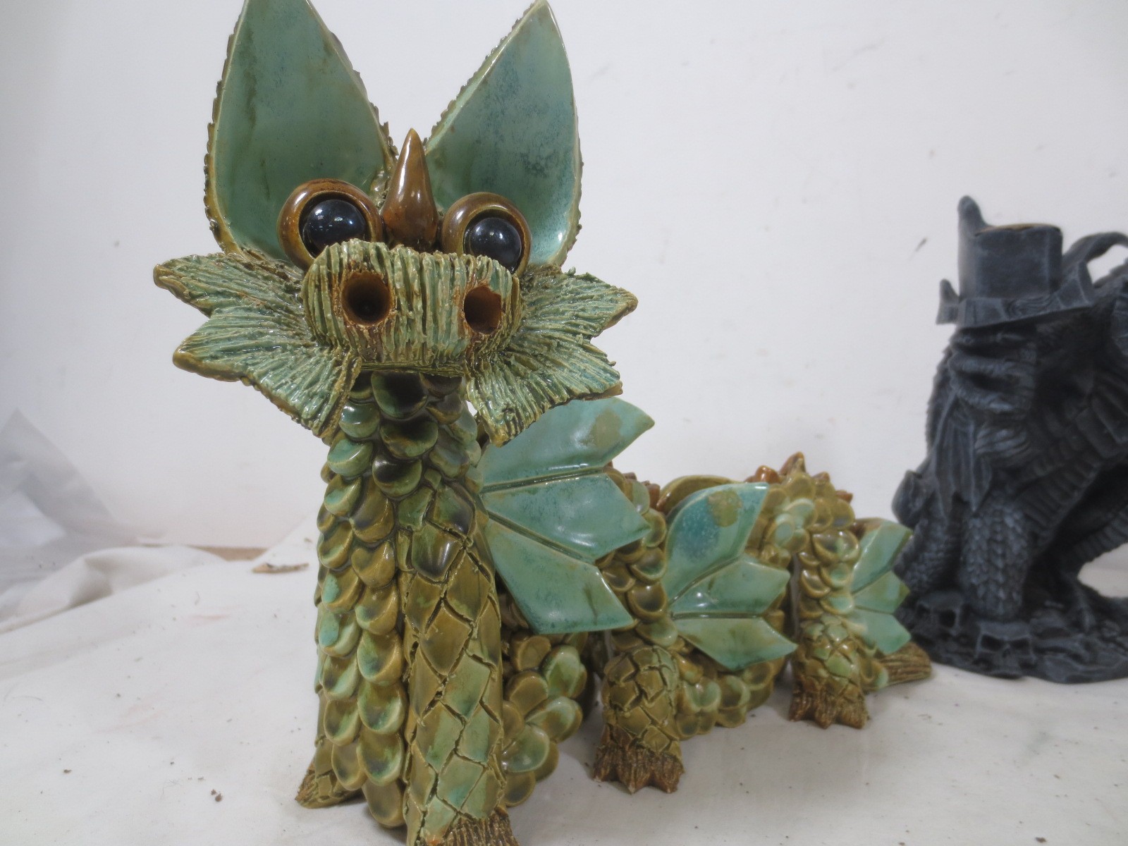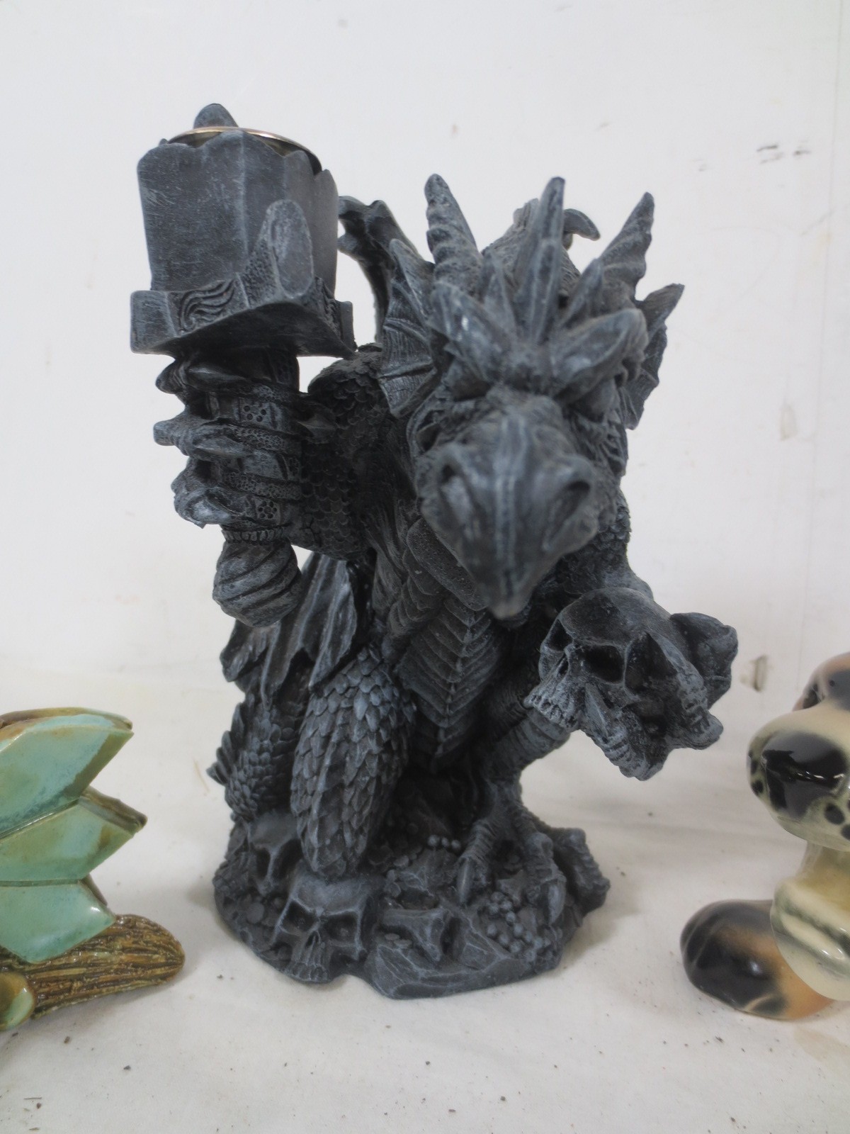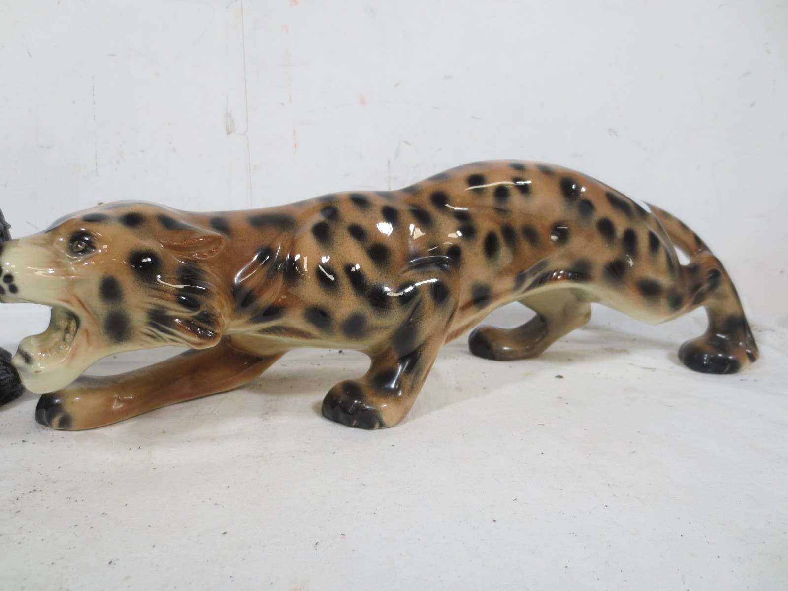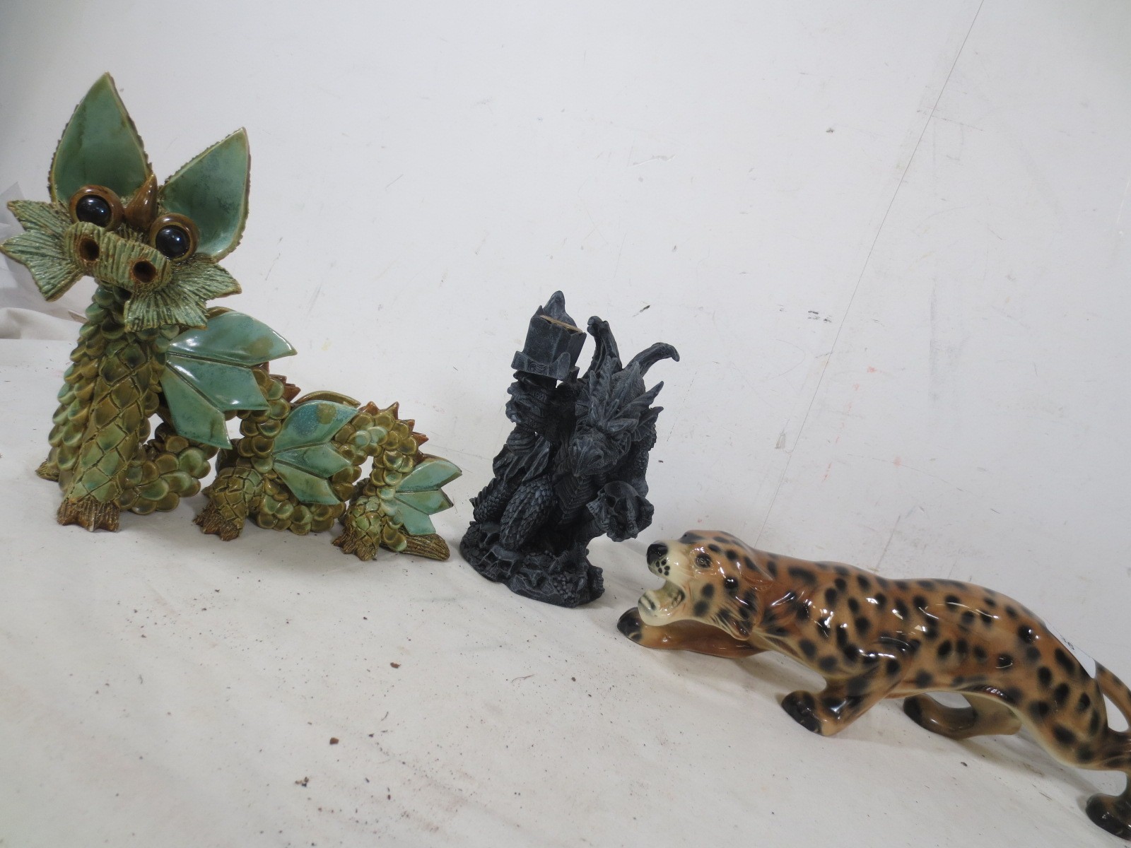 Hand made Yare designs dragon along with another and a Figurine of a Crouching Leopard by Unknown manufacturer.