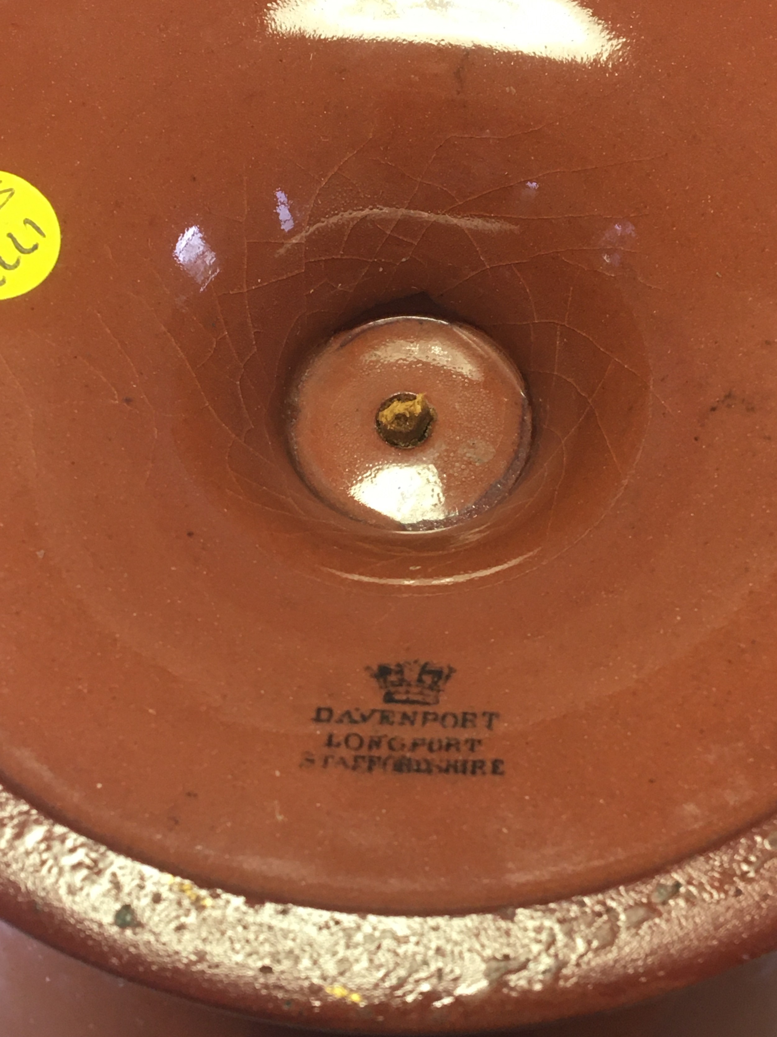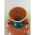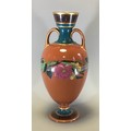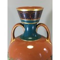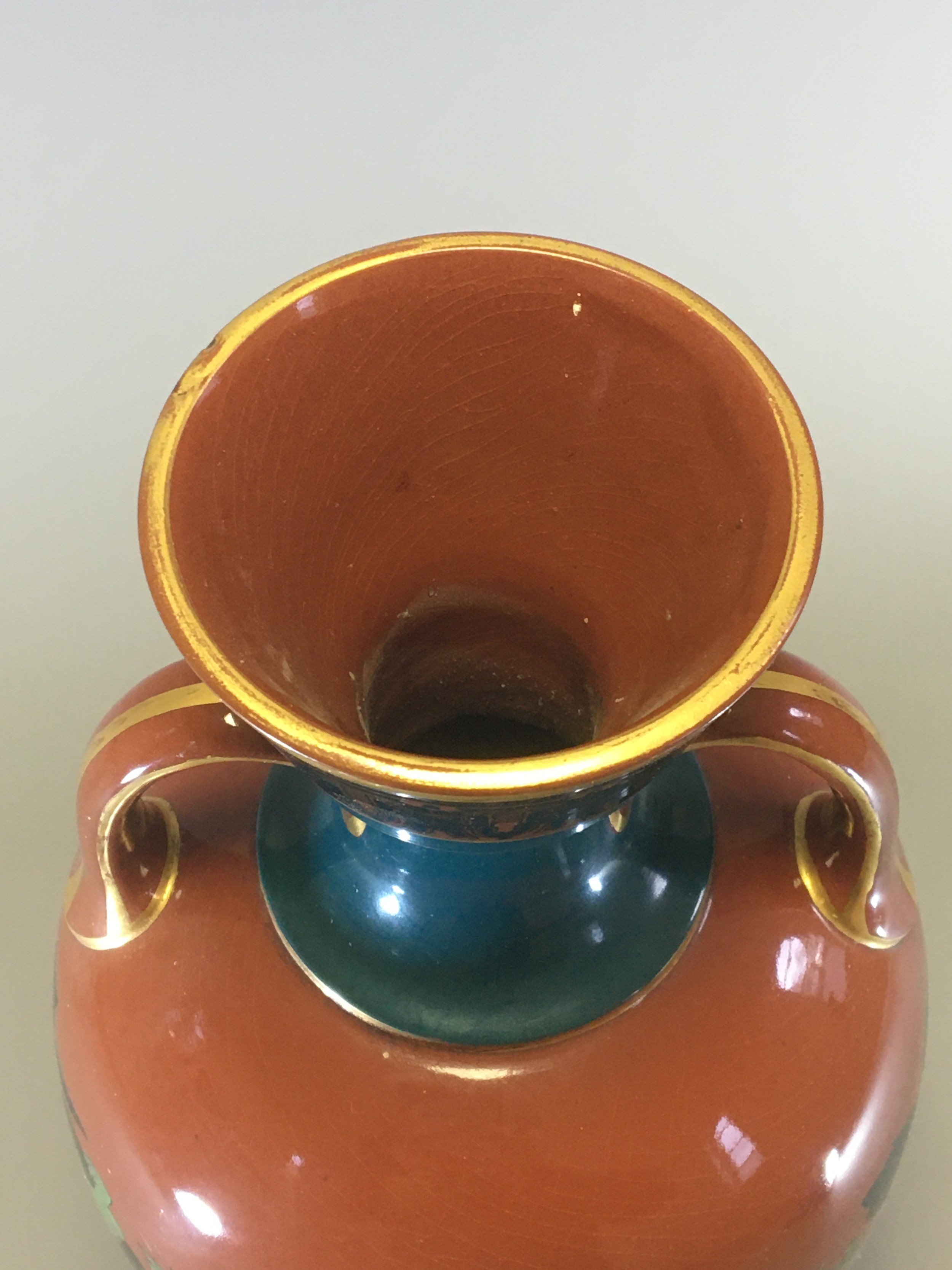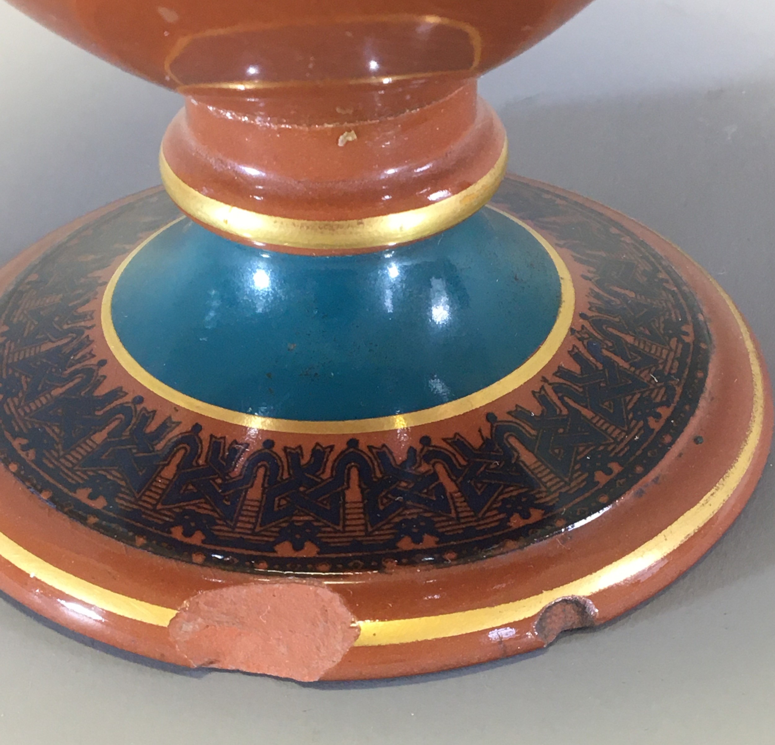 Tall and Unusual Davenport Longport Staffs Amphora Shaped Vase. Floral Swag Motif on a Terracotta Ground. Gilt Decoration with Greek Style interlocking Pattern.